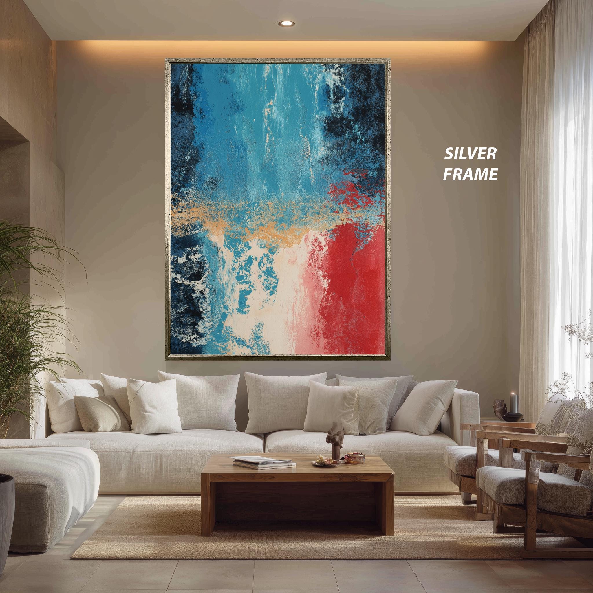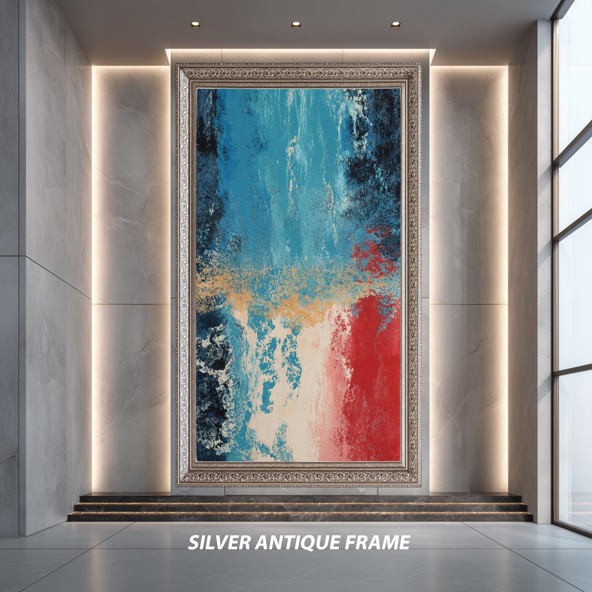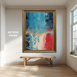 Printed on museum-quality canvas, this abstract art print is available as a roll (unframed) or stretched canvas, gallery wrapped on sturdy wooden bars and ready to hang. Choose from multiple sizes ranging from 8"x12" (20x30cm) to 59"x98" (150x250cm), or request a custom size to perfectly fit your wall. Frame options include classic finishes in gold, silver, black, white, and brown, as well as luxury frames in aged gold, antique gold, and antique silver.