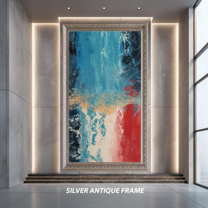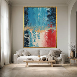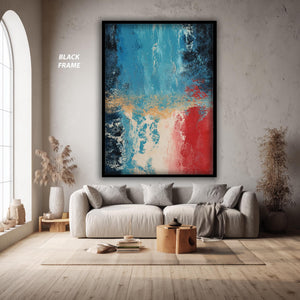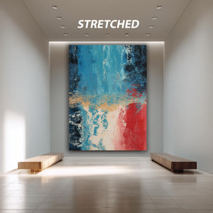 This bold abstract art print captures the essence of color field painting, delivering a striking emotional art print that enhances any room with its modern wall decor appeal. Featuring deep blue and vibrant red textures, this canvas wall art offers a sophisticated contemporary art poster ideal for fans of abstract expressionism artwork. Perfect for those seeking minimalist art print styles, this gallery wrapped canvas transforms your space with bold color blocking and emotive contrasts.