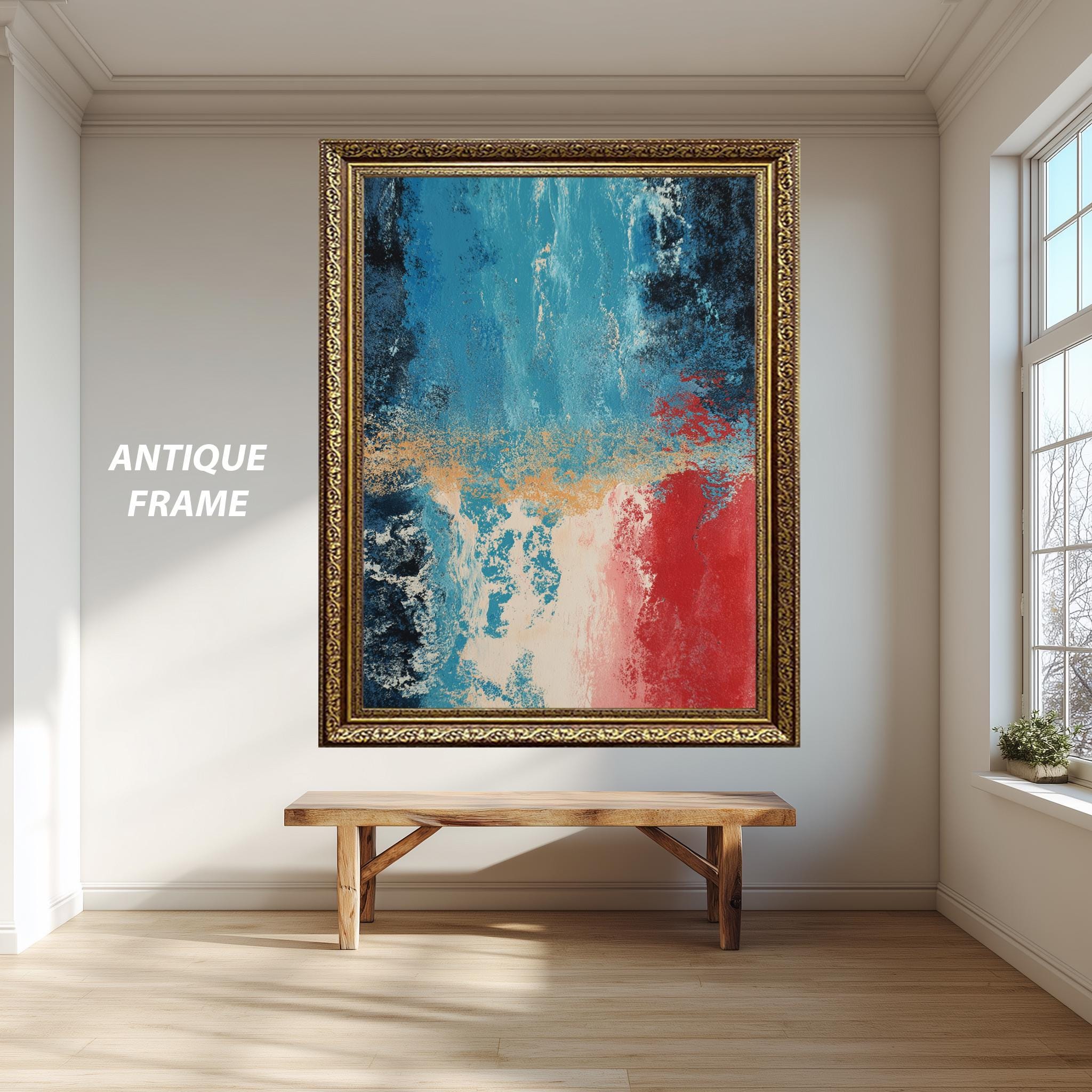 - Inspired by Mark Rothko’s signature bold color blocking → creates deep emotional resonance through vibrant red blue wall art