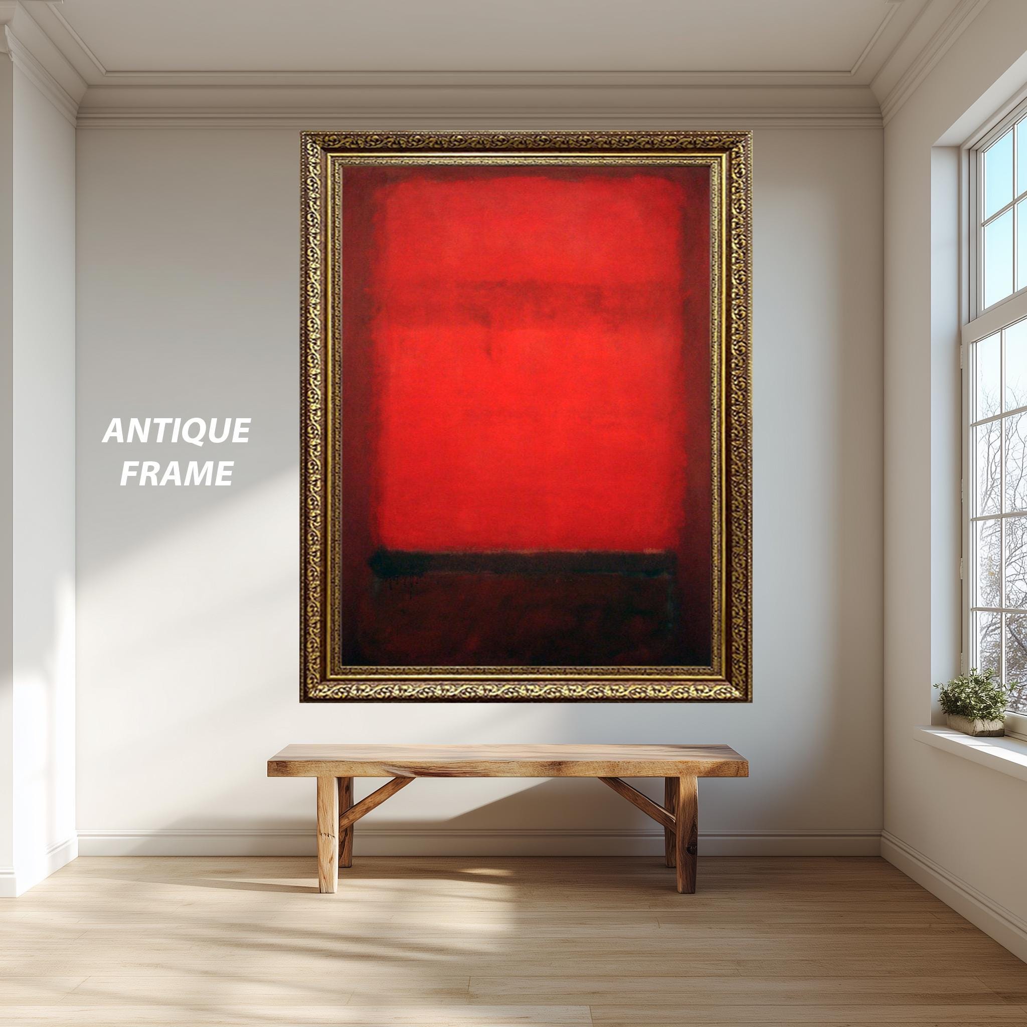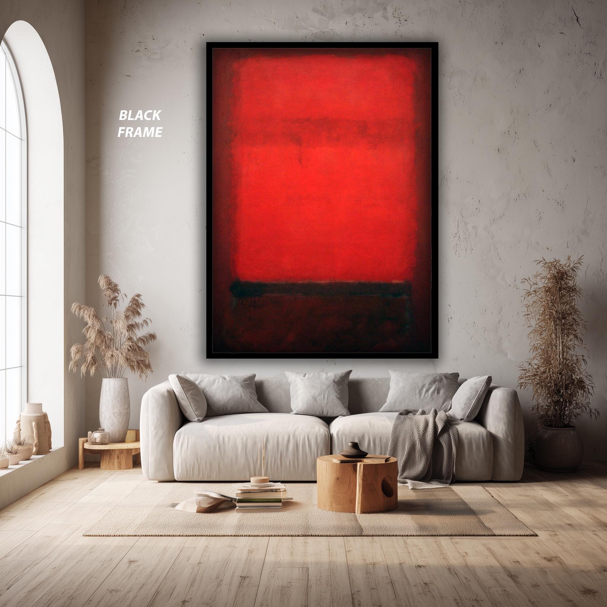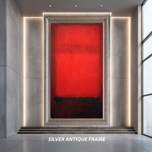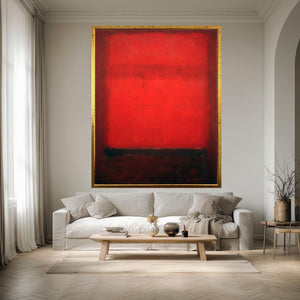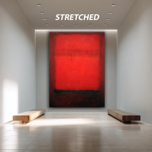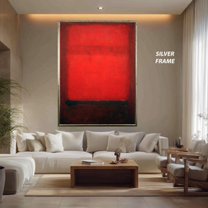 This abstract canvas print brings bold color block style inspired by Mark Rothko to your living room decor, creating a moody home print that enhances any industrial loft style or minimalist canvas art setting. Featuring a striking red and black art composition, this modern wall art captures the essence of color field painting while adding contemporary wall decor sophistication.