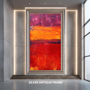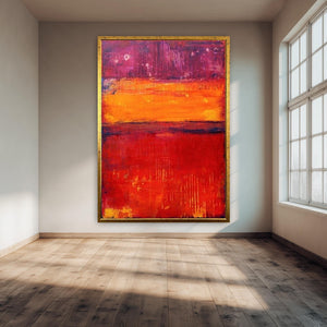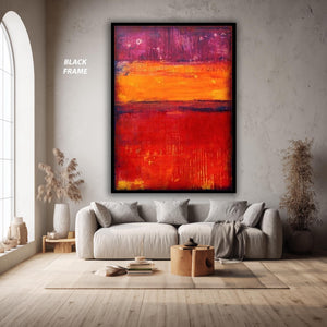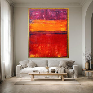 This abstract canvas print captures the emotional depth of color field painting inspired by Mark Rothko, delivering a vibrant and modern wall art piece that transforms your space with bold color blocking and contemplative presence. Designed to enhance contemporary home decor, this colorful geometric poster features a striking red orange print balanced by deep blue tones, perfect for fans of minimalist wall decoration and mid century modern art.