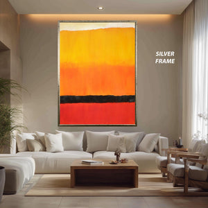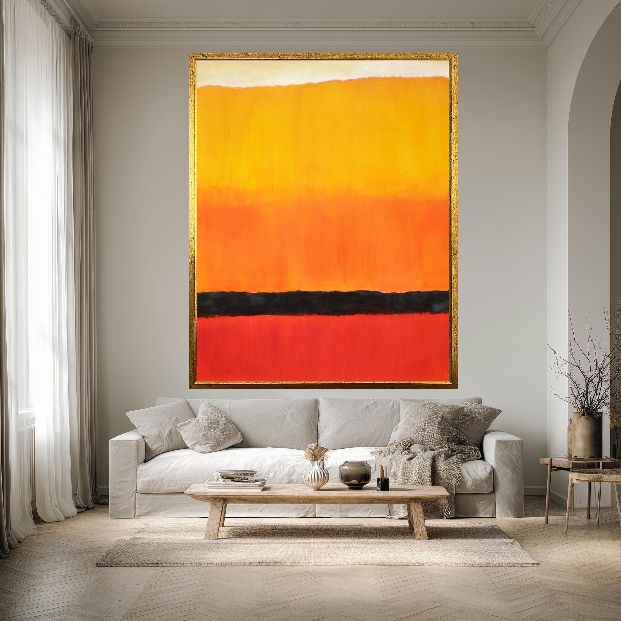 This abstract canvas print is perfect for elevating your living room, bedroom, or office wall decoration with sophisticated home art that radiates warmth and inspiration. Its minimalist canvas art style complements contemporary interiors while paying homage to the iconic Mark Rothko style print tradition. Add a striking focal point with this bold color blocking piece that balances visual drama and contemplative presence.