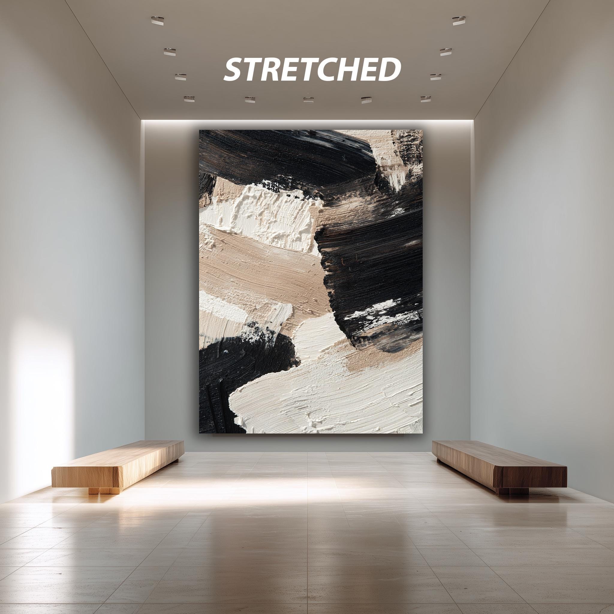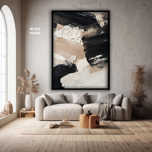 Abstract Canvas Wall Art – Modern Black Beige Texture Print | Neutral Living Room Artwork