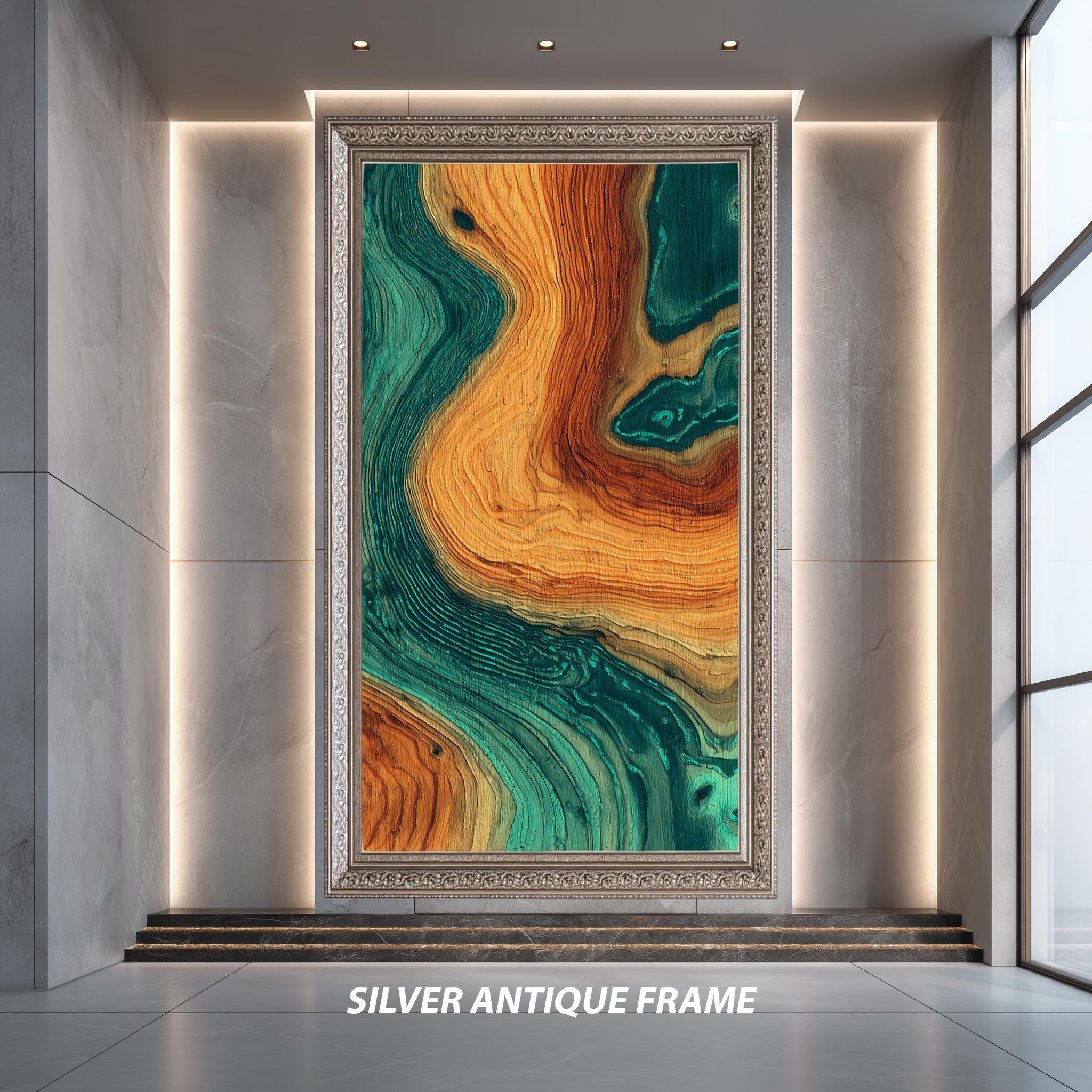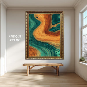 Abstract Canvas Wall Art – Modern Teal Orange Print | Wood Texture & Geometric Design