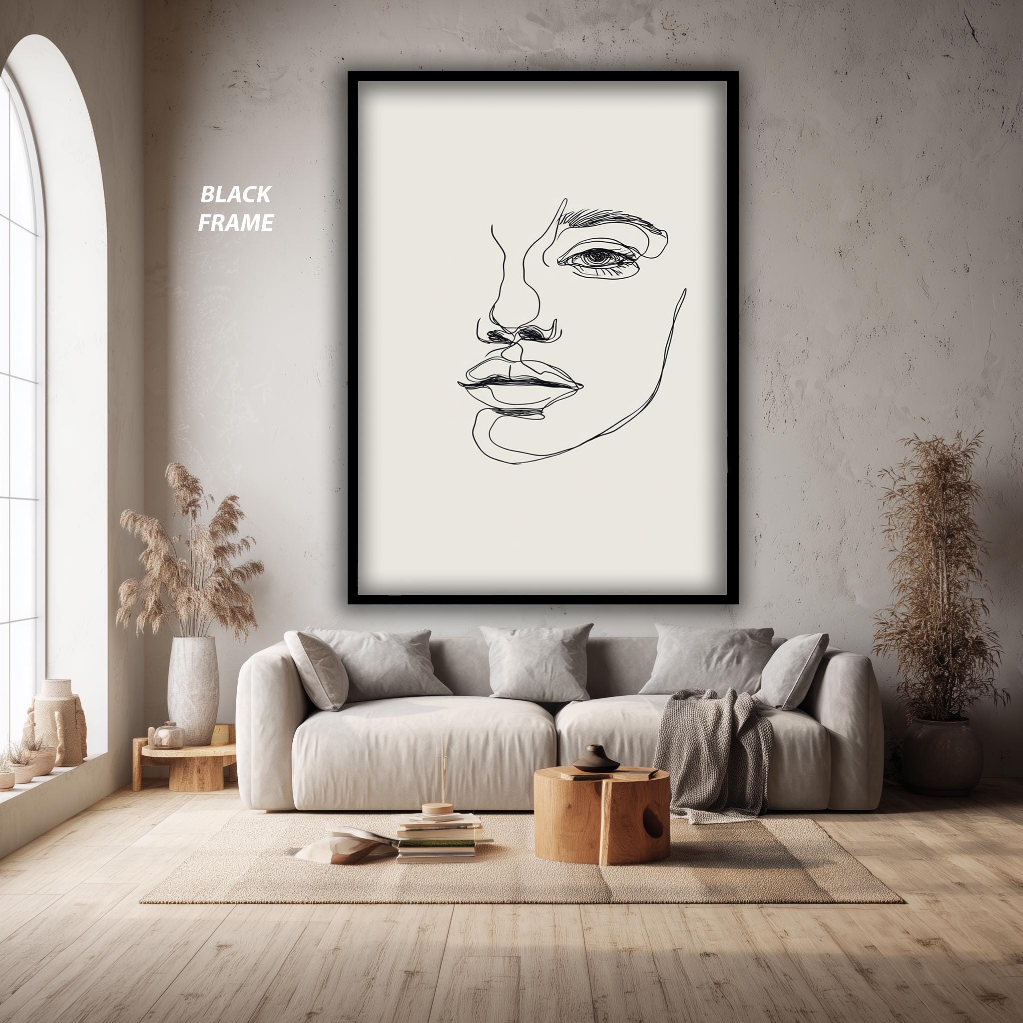 This abstract face wall art features a minimalist line drawing of a woman's face, designed to bring modern wall decor elegance to your home. This one line face art print offers a simple face line art style that delivers an elegant wall print perfect for any contemporary space. Printed as a black and white poster, this female face sketch print enhances your living room or office with sophisticated canvas art for living room display. The minimal modern artwork showcases abstract expressionism art through clean lines and subtle detail, making it an ideal piece of line art home decoration.
