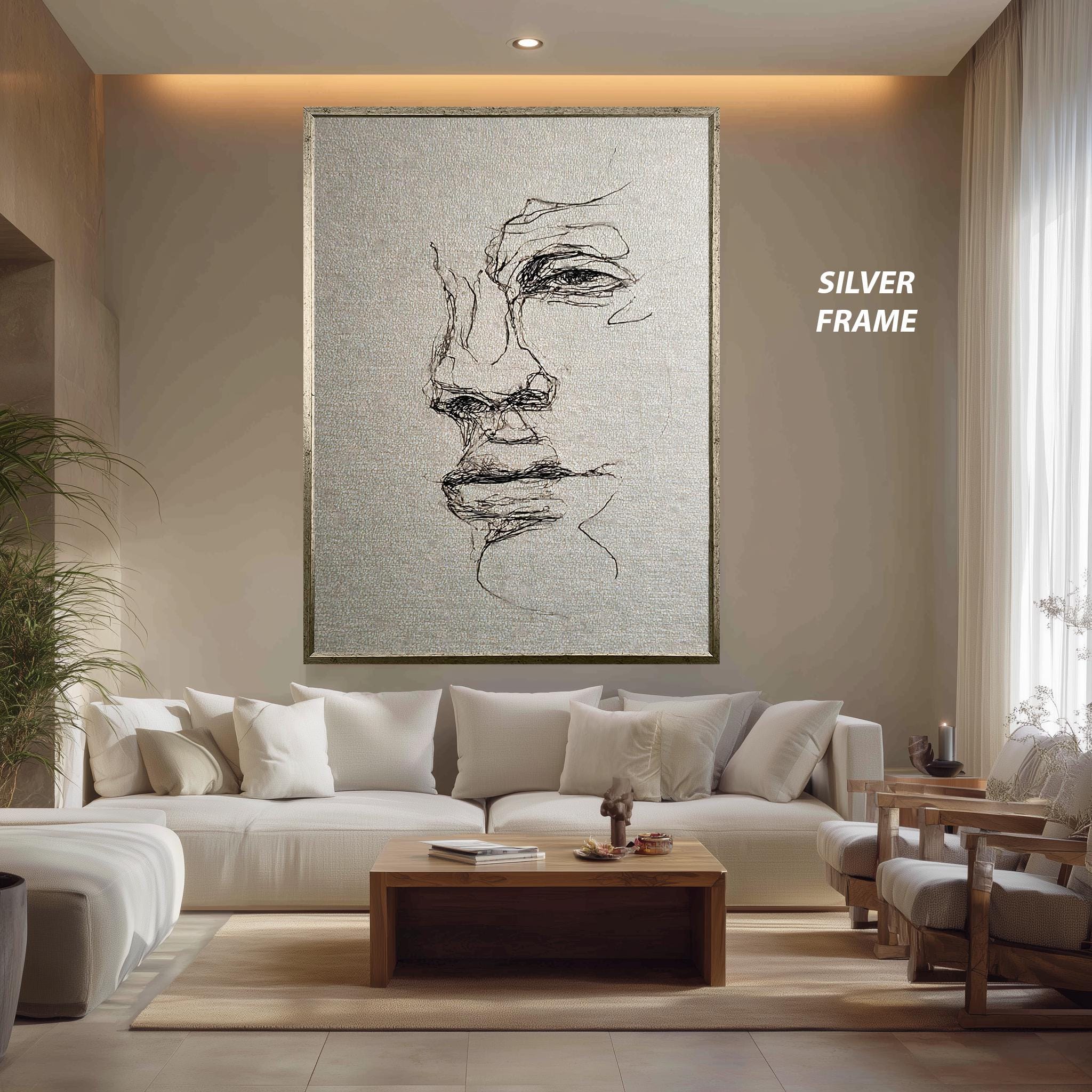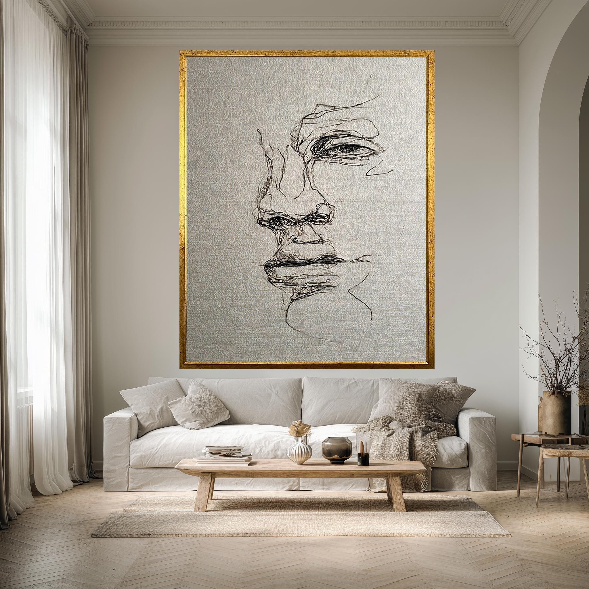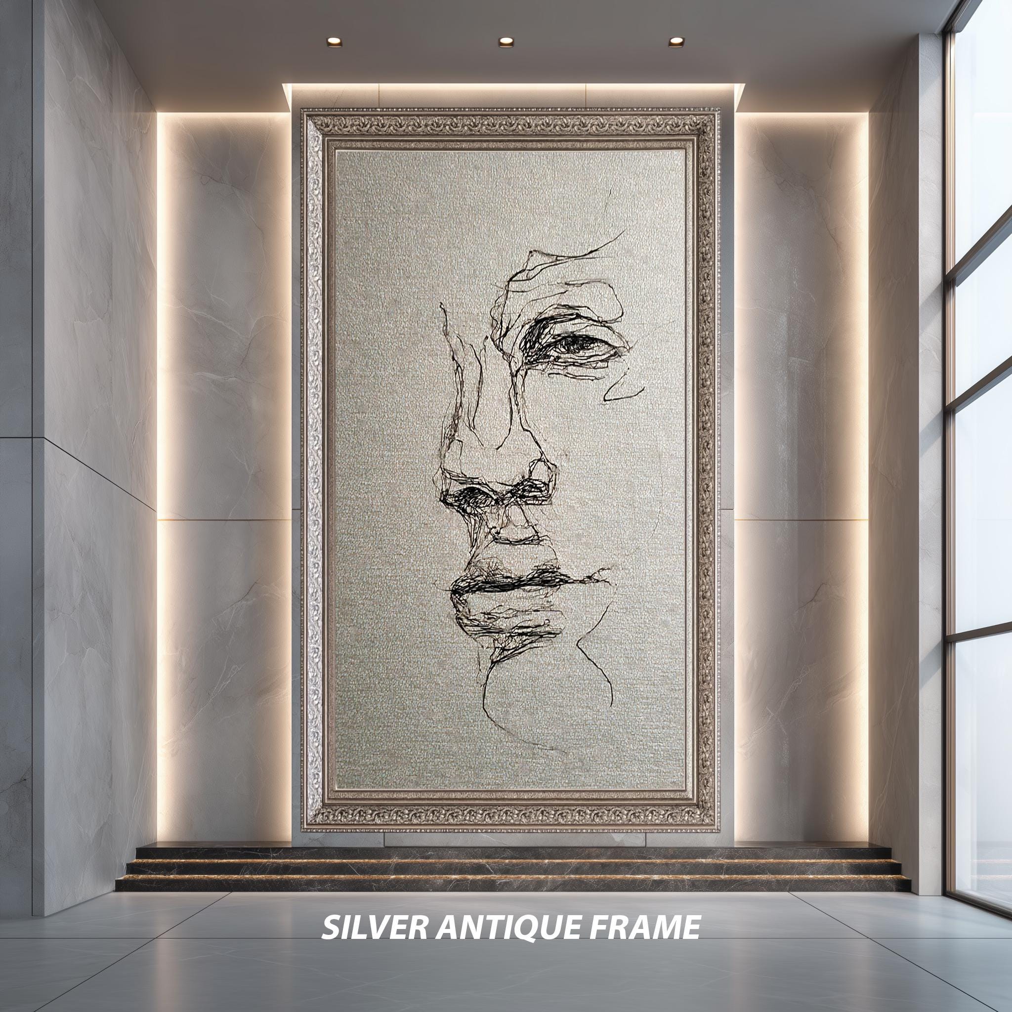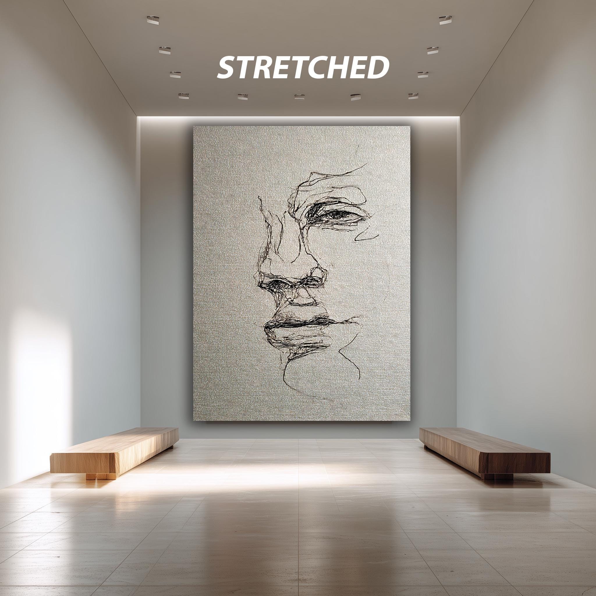 Experience the impact of this canvas wall decor designed to enhance minimalist and contemporary interiors. The textured ink drawing technique delivers fine details and rich contrasts, making it an ideal line art poster for lovers of abstract line art portraiture and emotional sketch drawing. Perfect for living rooms, bedrooms, or office spaces, this piece offers both artistic inspiration and timeless elegance.