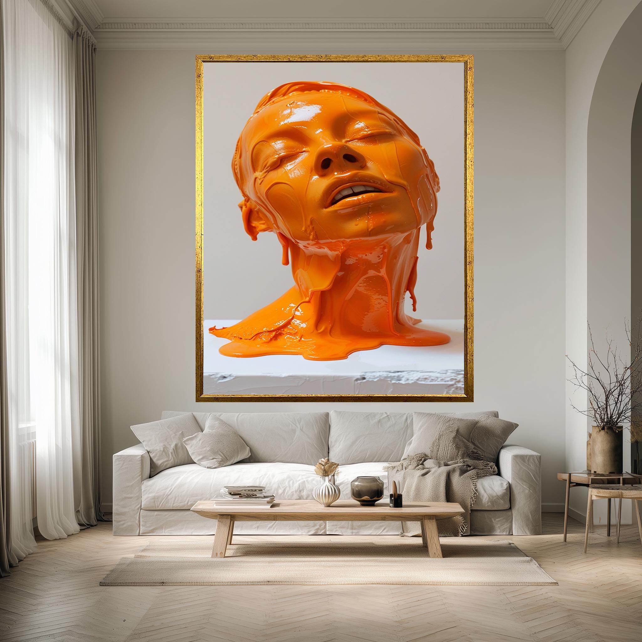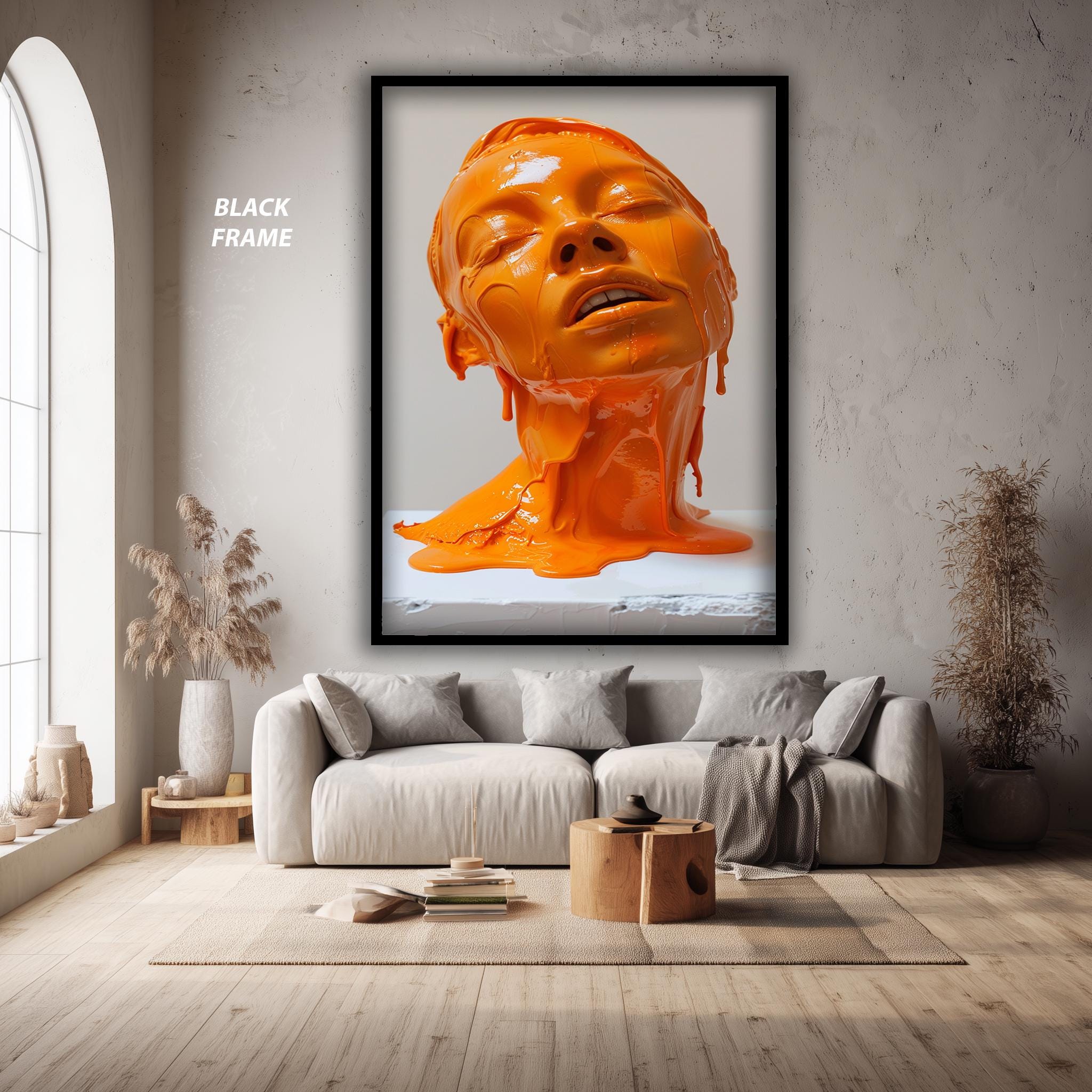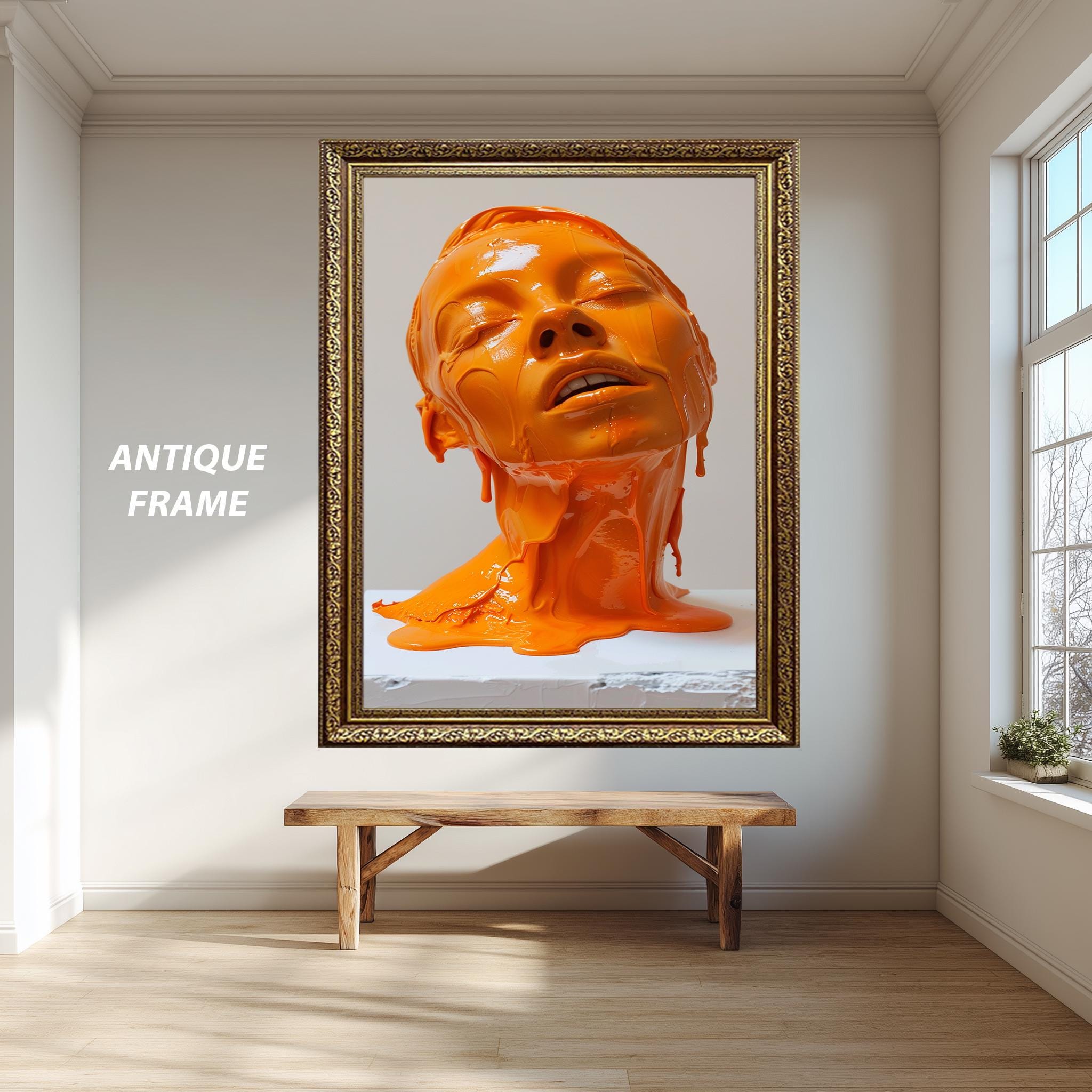 DreamLineCanvas stands behind every piece with dedicated customer support and welcomes custom size and design requests. Whether you are decorating your living room, bedroom, or office, this abstract orange bust canvas print adds warmth, inspiration, and sophisticated surreal wall art flair to your environment. Elevate your space today with this timeless piece of contemporary office art that perfectly balances minimalist wall decoration with emotive color field artistry.