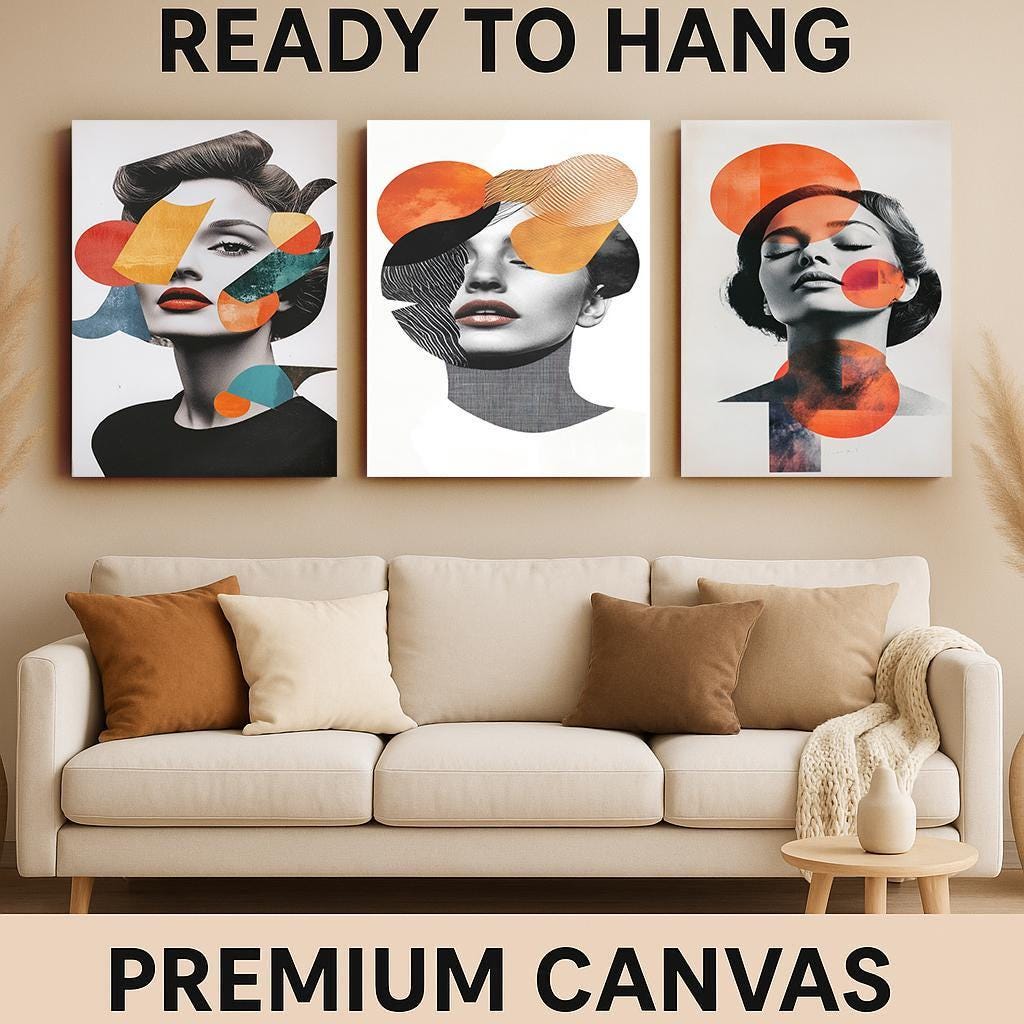 Transform your living room wall art or bedroom ambiance with this elegant abstract woman portrait canvas print set. Its minimalist yet bold design adds feminine charm and modern flair while fitting seamlessly into bohemian or Scandinavian interiors. Trust AuraCanvasUS for expert craftsmanship and premium materials that bring your walls to life with sophisticated art.