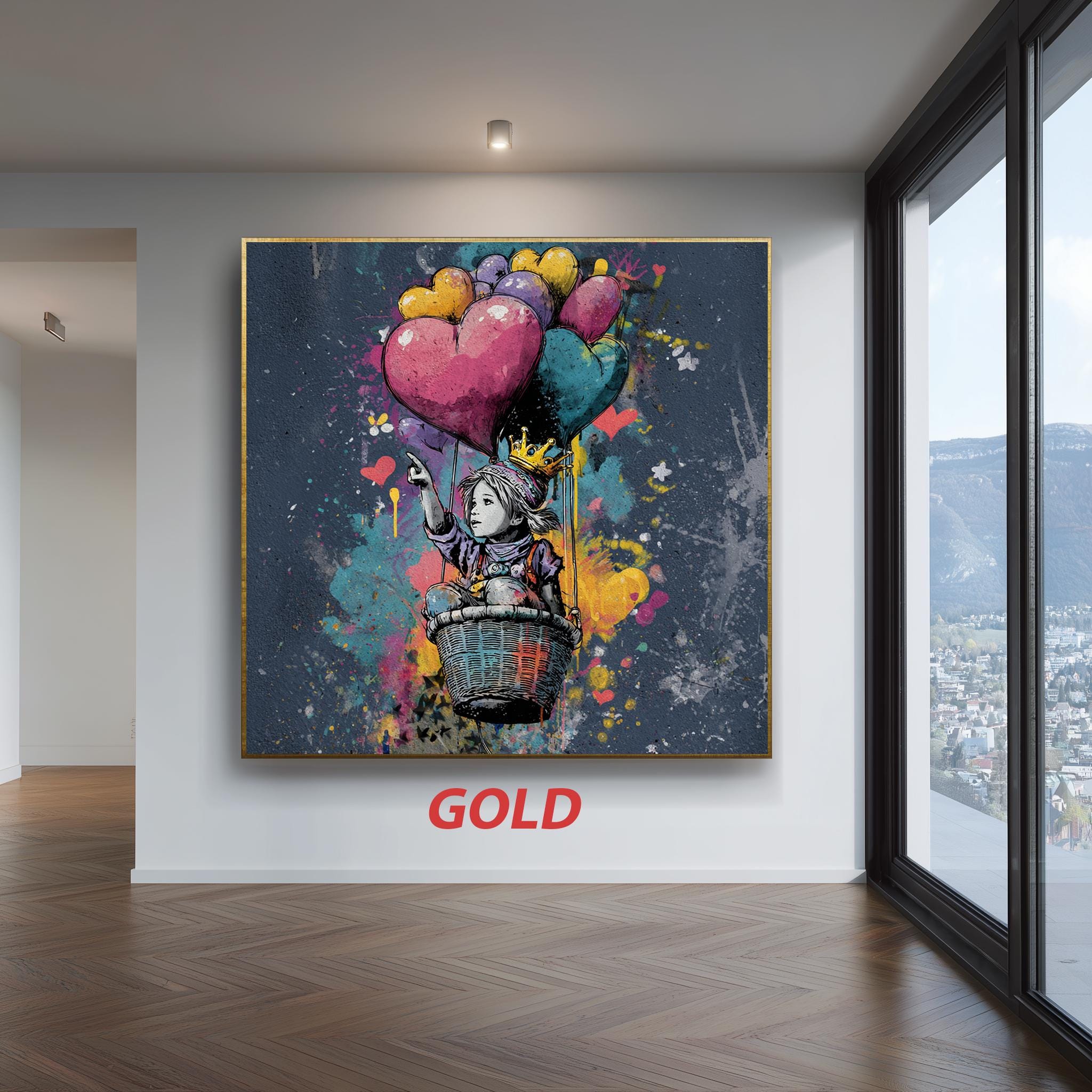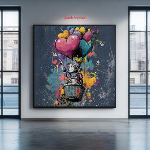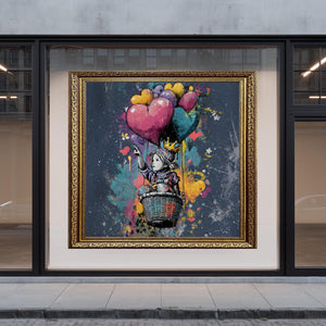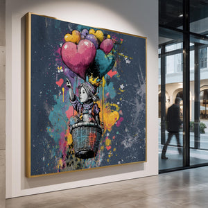 Balloon Street Art Print – Colorful Graffiti Crown Design with Heart Balloon Artwork