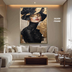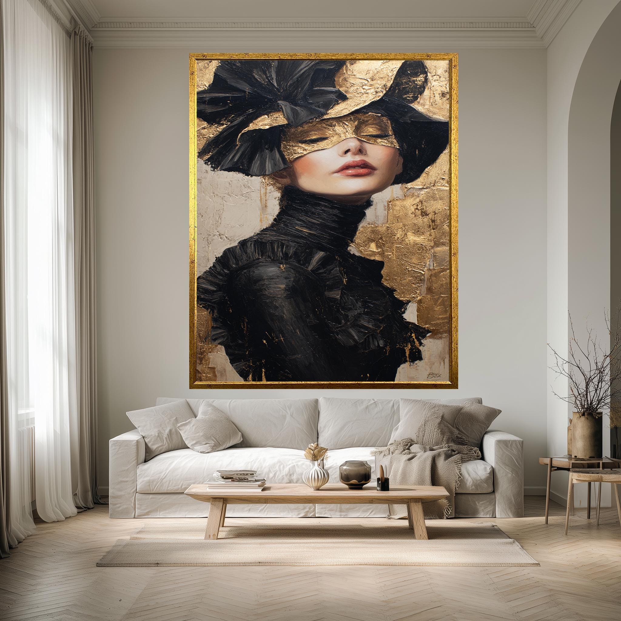 Experience the captivating contrast of black and gold art that transforms any room into a chic interior showcase. This elegant woman portrait combines abstract wall decor with refined style, making it an ideal art collector gift or centerpiece for your home or office.