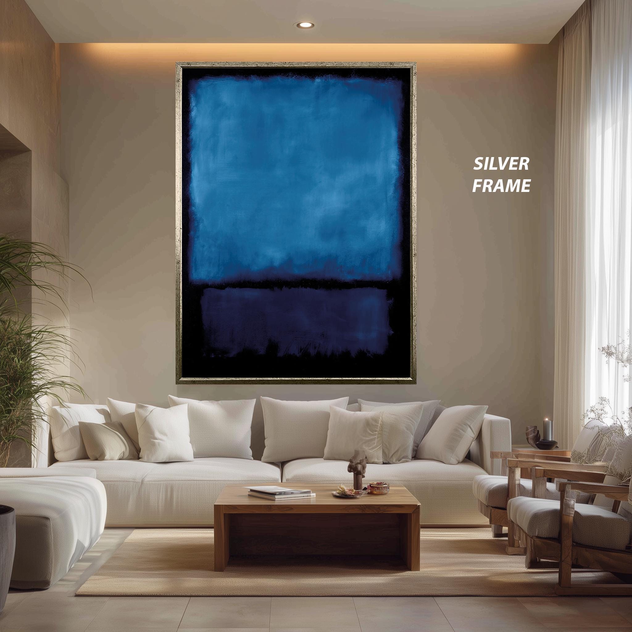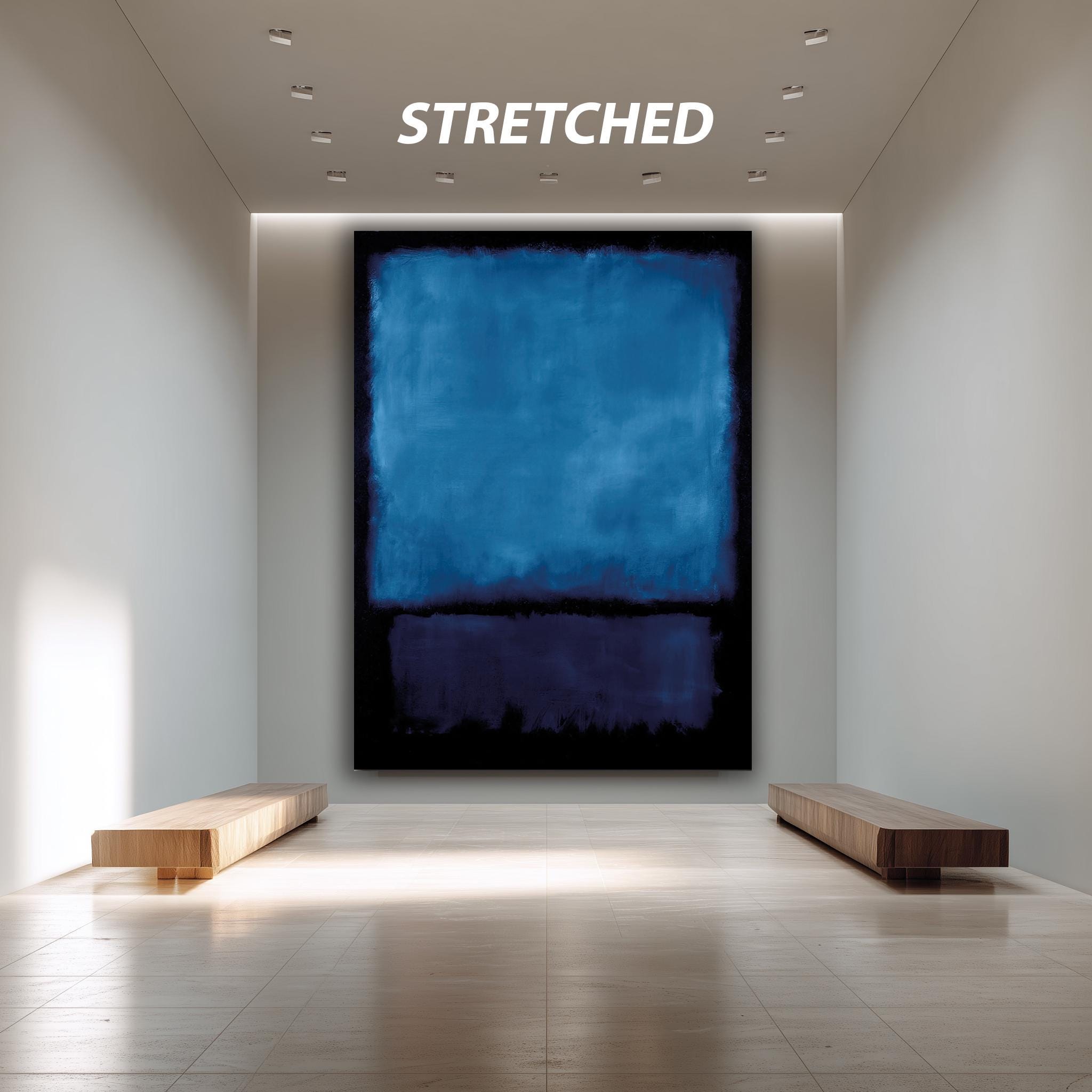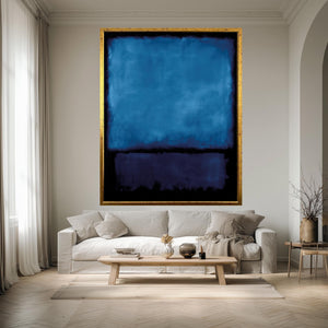 This blue abstract canvas print brings a bold and sophisticated touch to any modern space, combining deep blue wall decor with minimalist blue art to create a captivating focal point. Inspired by abstract expressionism print techniques, this navy canvas art features saturated blue tones and bold color blocking that evoke the emotive color field painting style of Mark Rothko. Designed for contemporary home artwork lovers and mid century modern decor fans, this gallery wrapped canvas print transforms your living room, office, or bedroom with its modern dark wall art aesthetic.