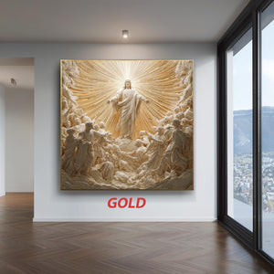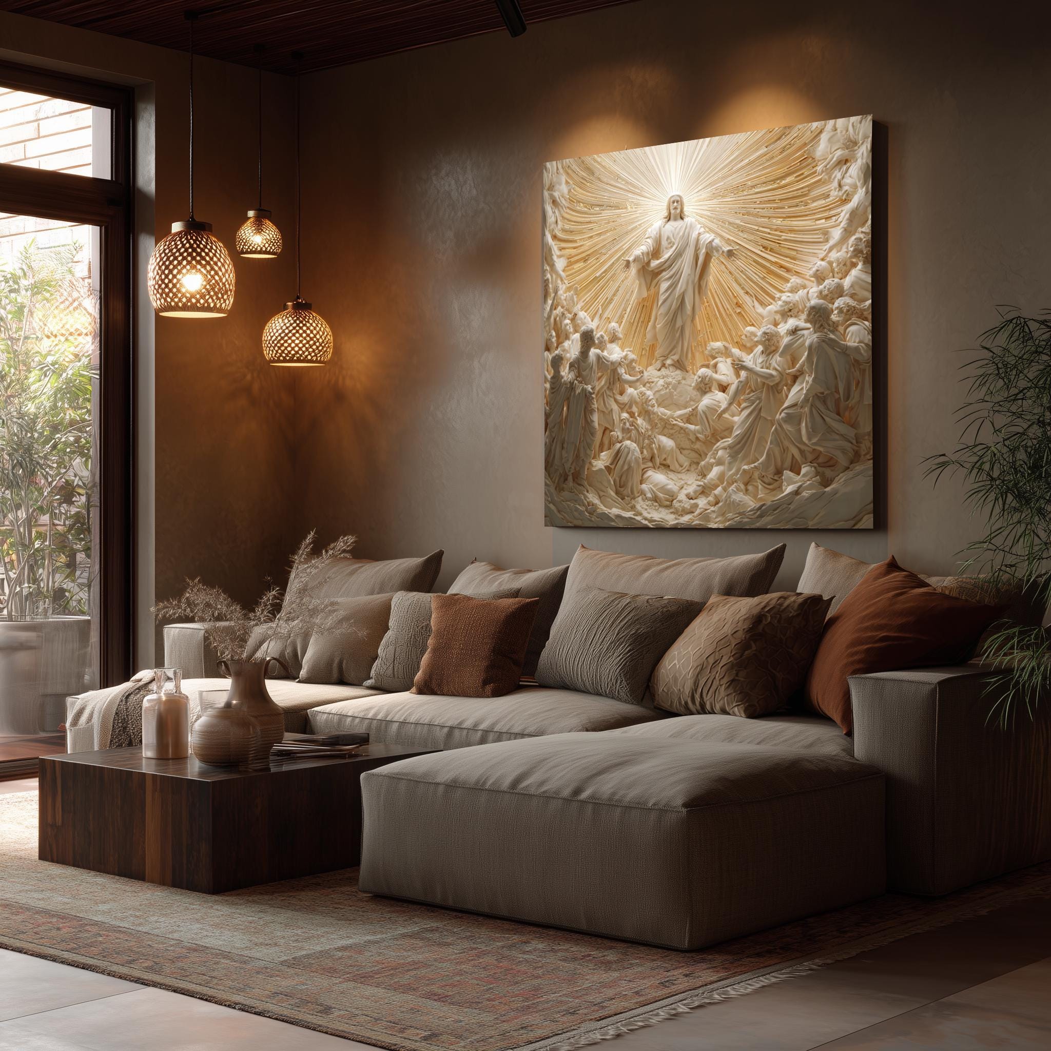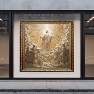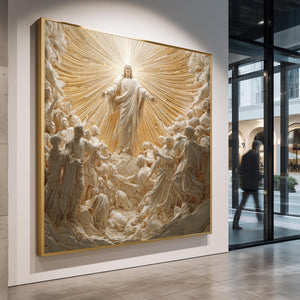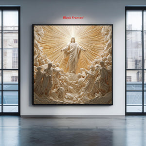 The Sacred Ascension of Jesus Christian wall art captures the powerful moment of Jesus' ascent, bringing a profound sense of faith and inspiration to your space. This religious wall decor features glorious light surrounding Jesus and his disciples, symbolizing divine love and spiritual elevation. Perfect for anyone seeking to enrich their home with biblical art print that fosters peace and devotion.