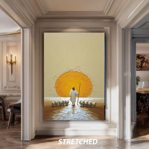 Christian Wall Art | Jesus Good Shepherd Poster – Spiritual Sunset Canvas Print