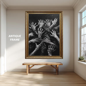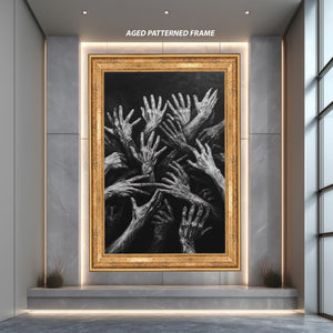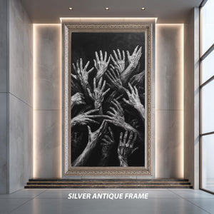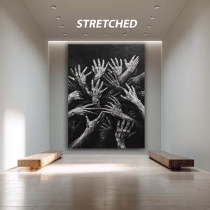 Dark Reaching Hands Canvas | Black and White Wall Art - Dramatic Surreal Poster