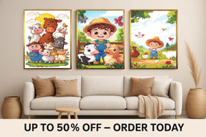 Bring the countryside indoors with this exclusive farm life nursery theme collection that celebrates nature and childhood innocence. With easy-to-hang designs and versatile sizing options, these children’s farm wall decor pieces fit seamlessly into any décor style.