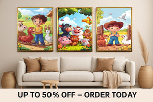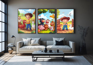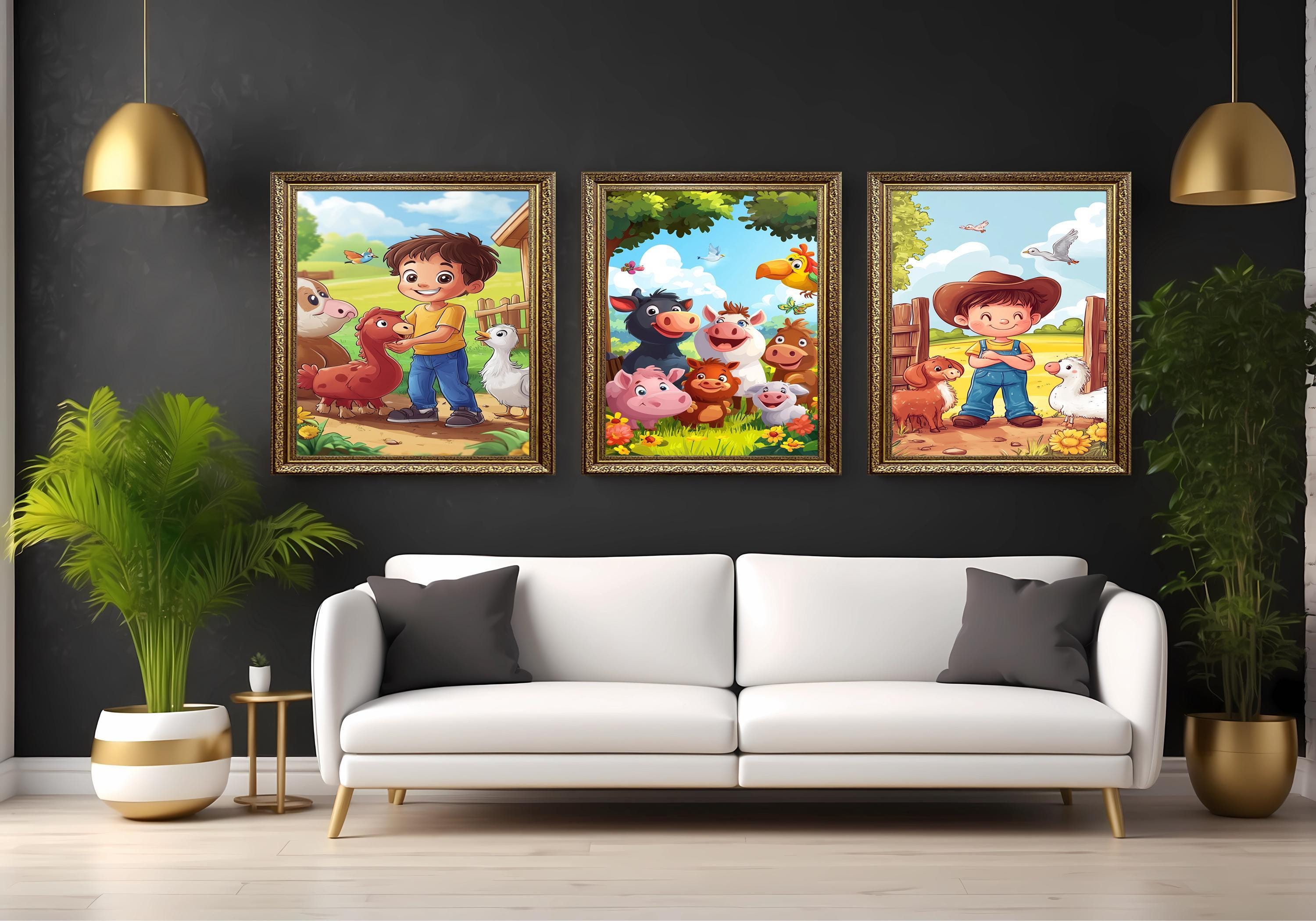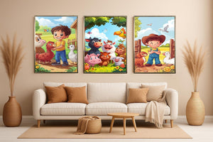 Choose from multiple sizes and frame options tailored to fit your space perfectly. Our premium materials and expert craftsmanship ensure your farm animal nursery prints remain vibrant and beautiful over time. Order today to add these playful toddler room art pieces to your collection and create a nurturing environment filled with adorable farm animals and happy farmers.