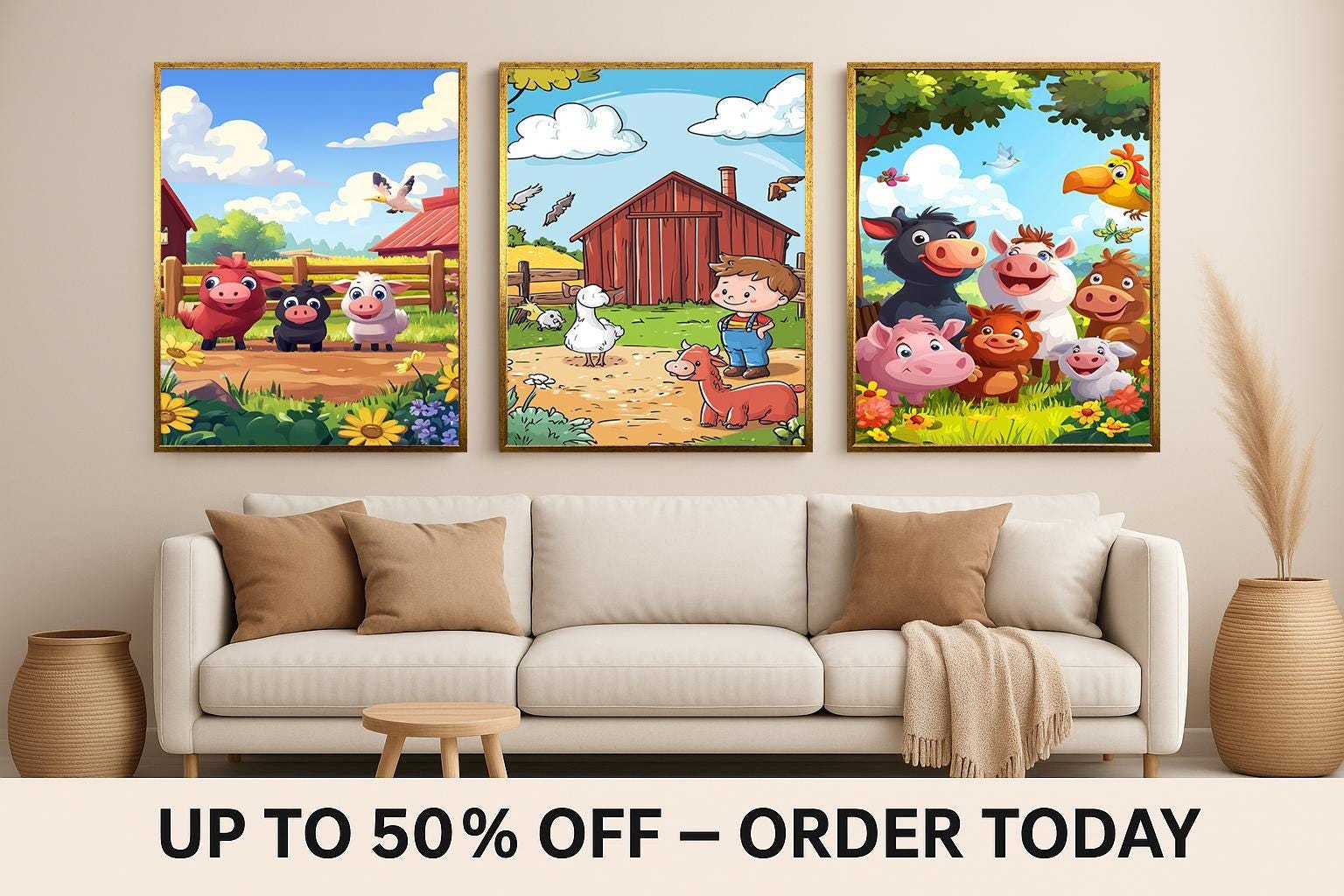 - Children’s farm animal poster → A timeless piece for growing kids’ rooms