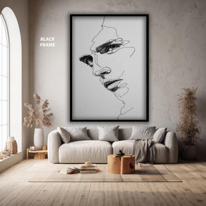 Crafted with precision, this line art poster features sharp, clean black lines that highlight the fragmented and broken face line style, offering a fresh take on abstract expressionism art. The use of high-quality textured paper enhances the depth and feel of the minimalist face art, making it an ideal choice for those seeking both style and substance in their wall decor.