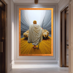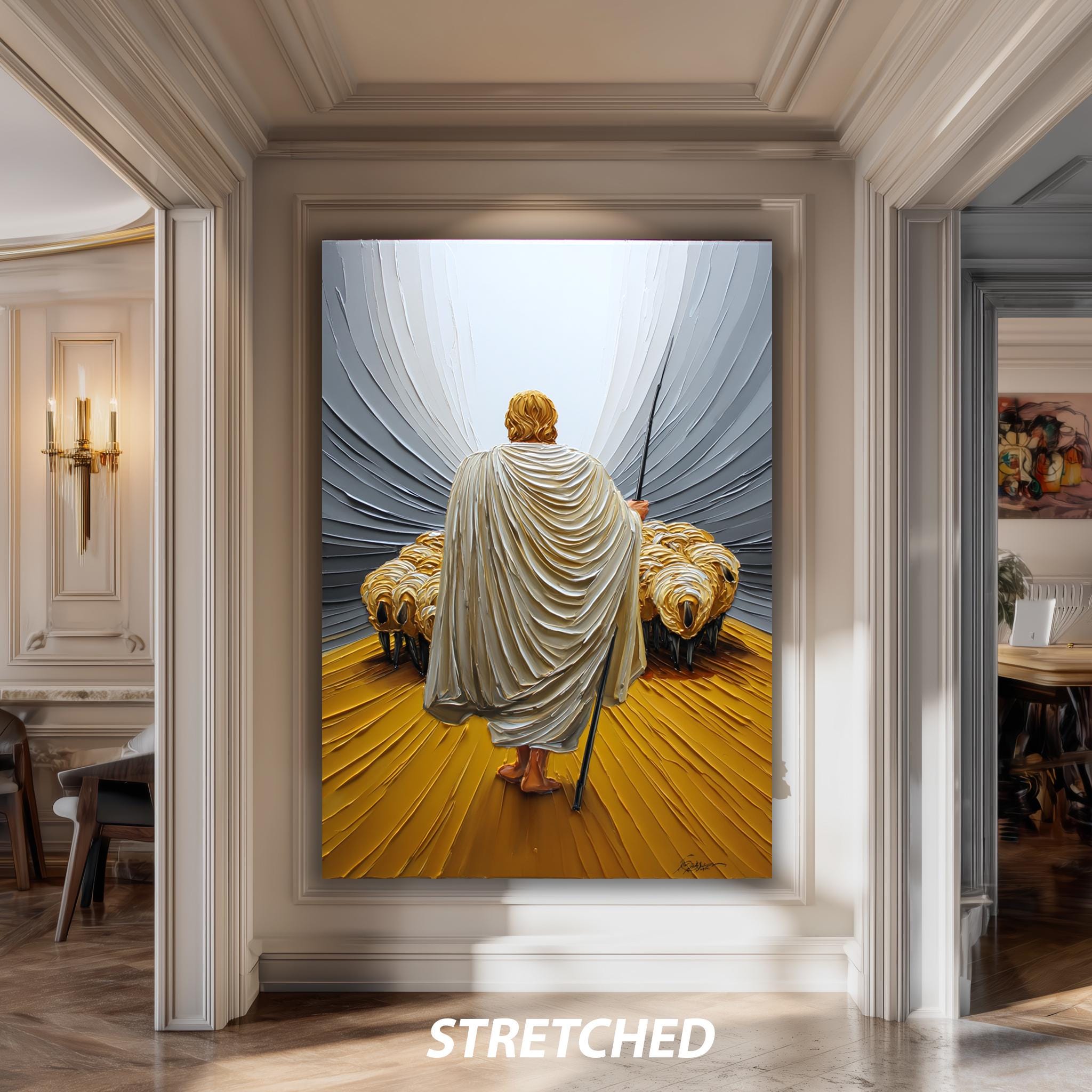 Good Shepherd Wall Art – Modern Christian Canvas Print with Jesus Staff & Sheep