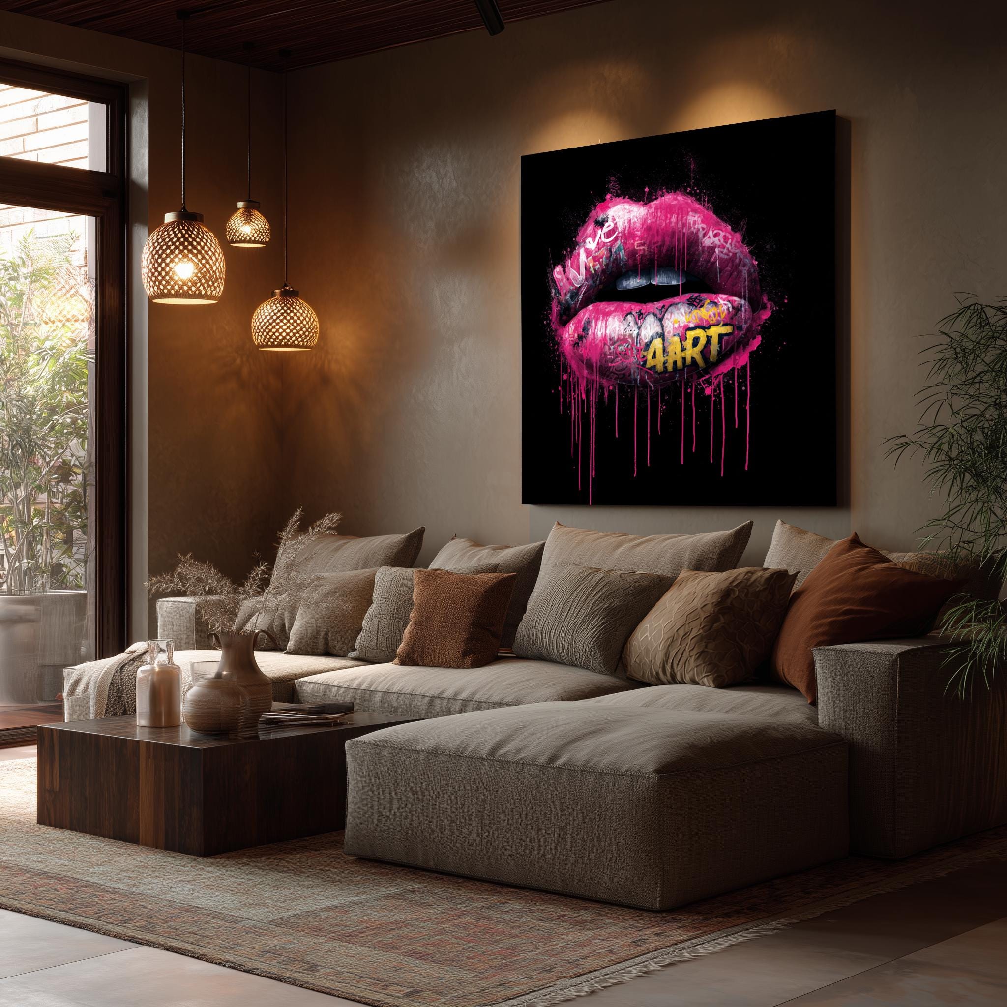 The Graffiti Lips Art Print with Dripping Neon Pink and Bold Lettering is a vibrant pop art wall decor piece designed to energize and personalize modern feminine interiors. This urban street art print captures attention with its dripping neon paint effect and bold lettering artwork, making it a striking focal point for any room. Perfect for those seeking a unique feminine room decoration that blends sacred home decor vibes with edgy street pop fusion art, this neon pink lips poster brings both style and attitude.