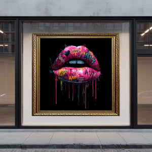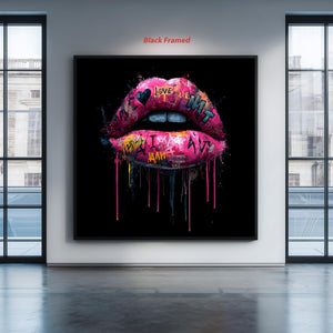 Graffiti Lips Print – Bold Pop Art Wall Art with Neon Drips for Edgy Decor