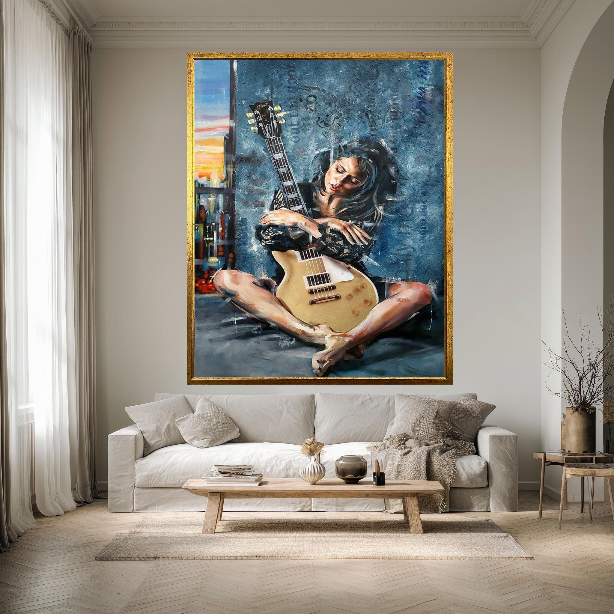 This guitar girl canvas print is ideal for collectors of contemporary art gifts, fans of abstract expressionism print, or anyone seeking to add soulful music inspired decor to their living room, bedroom, or office. DreamLineCanvas guarantees museum-quality craftsmanship backed by dedicated customer support.