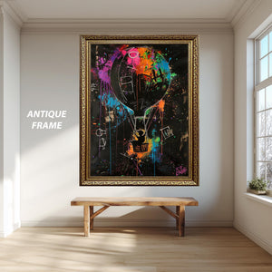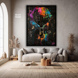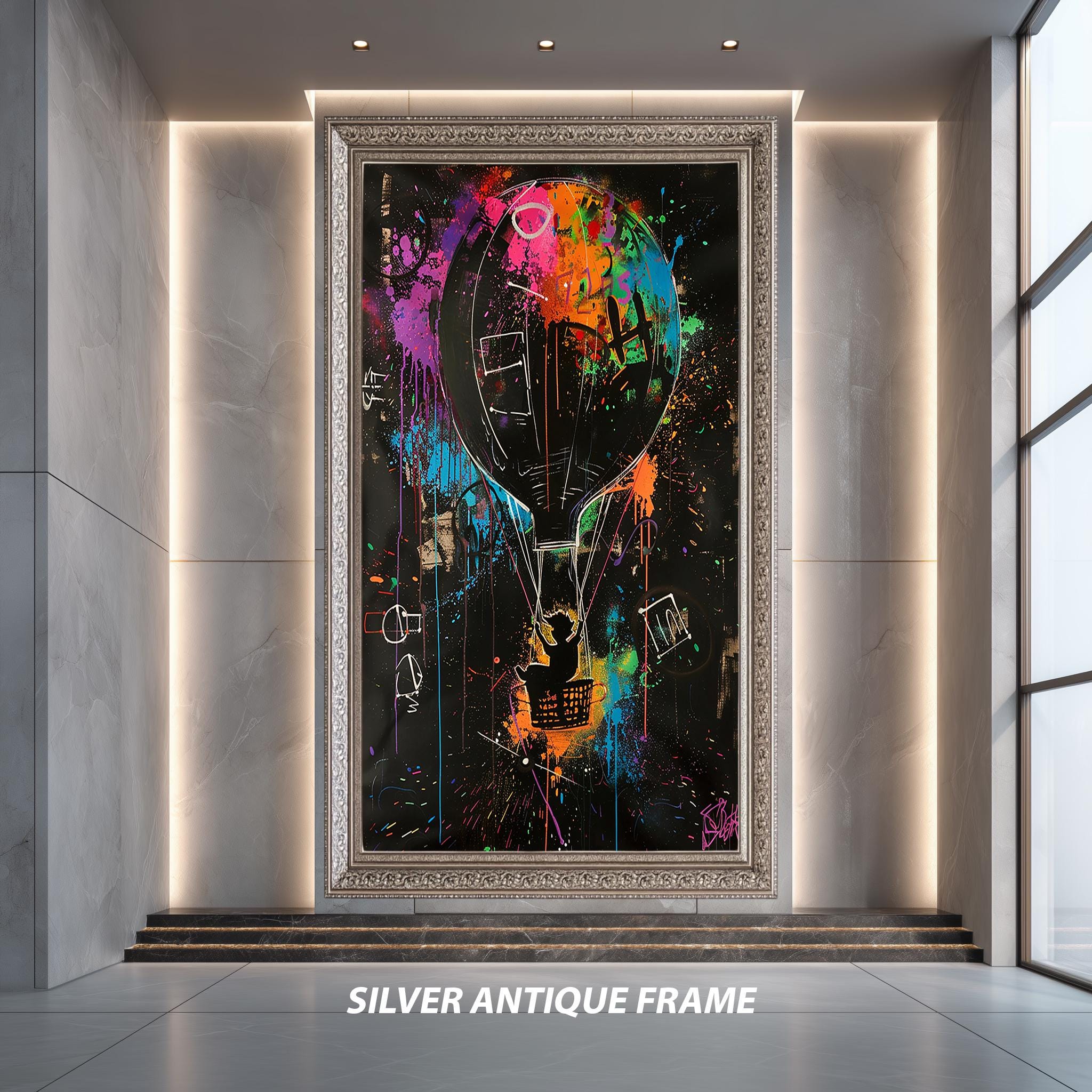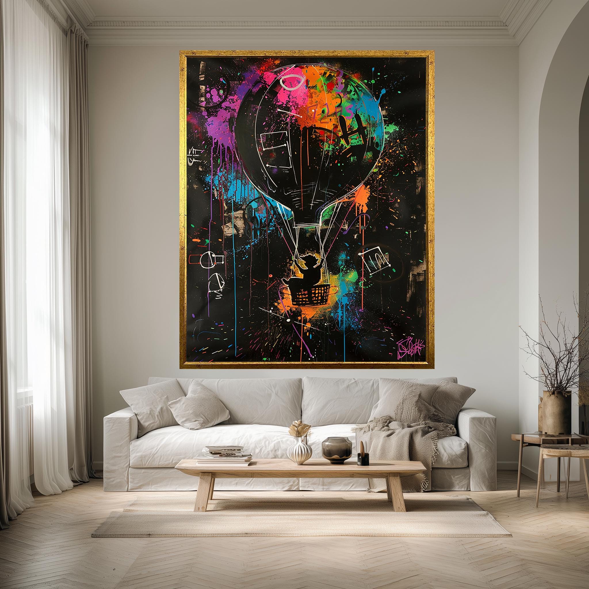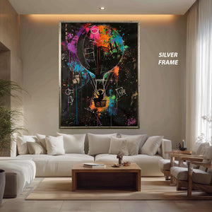 This Colorful Hot Air Balloon Street Art Print is a vibrant hot air balloon art piece that brings lively urban energy and creative flair to any space. Featuring a child silhouette poster design in graffiti style, this street art poster blends colorful dream art with abstract kids decor to transform your walls into a modern street decor statement. Printed on premium canvas, this graffiti wall print offers a durable, vibrant wall print that enhances creative room art and fits perfectly in contemporary homes or offices.