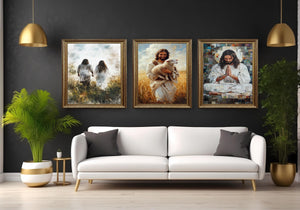 - 3 piece Jesus art set showcasing the Good Shepherd theme to inspire faith and compassion