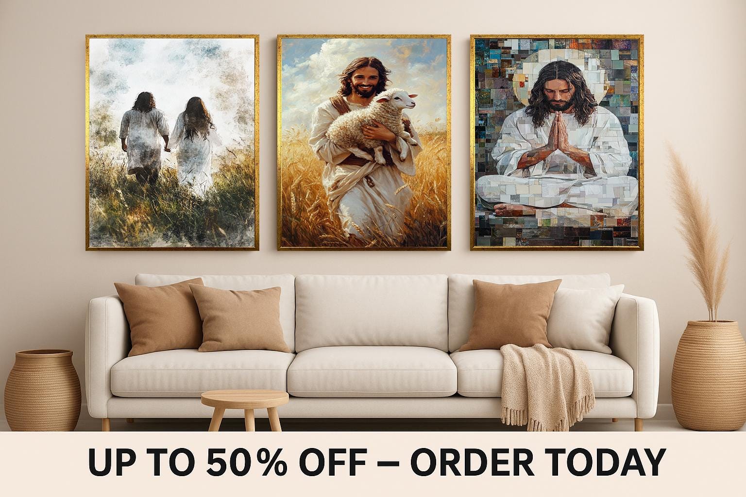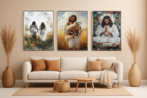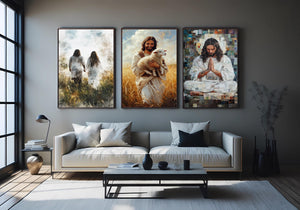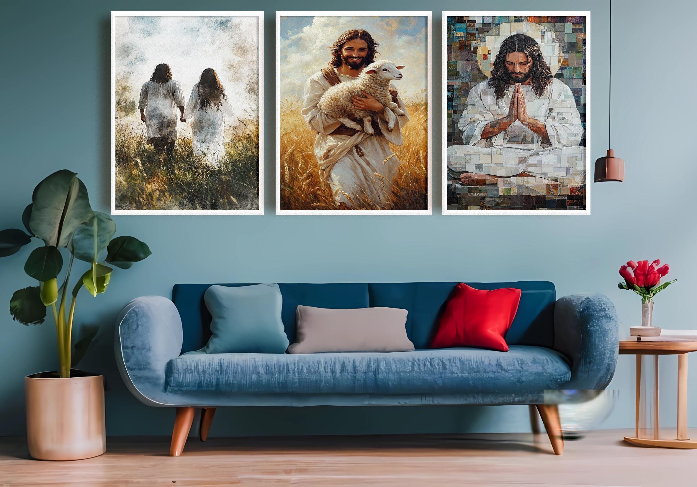 This Jesus Christ canvas art set brings spiritual warmth and inspiration to your home or sacred spaces. Featuring a 3 piece Jesus art set portraying Him as the Good Shepherd, this Christian wall art delivers faith based artwork that uplifts and comforts. Each Jesus Good Shepherd print is crafted with vibrant colors and fine detail, perfect for prayer room wall art or canvas art for church environments. The set offers inspiring Christian decor that enriches any modern Christian paintings collection while serving as a meaningful Christian gift idea.