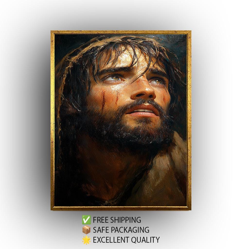 Bring home this powerful Jesus Christ painting today and transform your environment into a place of faith and hope. Let this emotional religious painting be a source of strength and divine inspiration in your life.