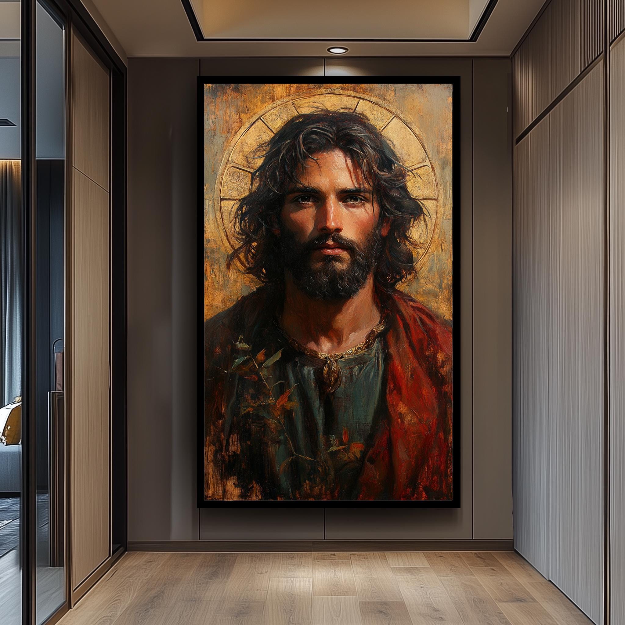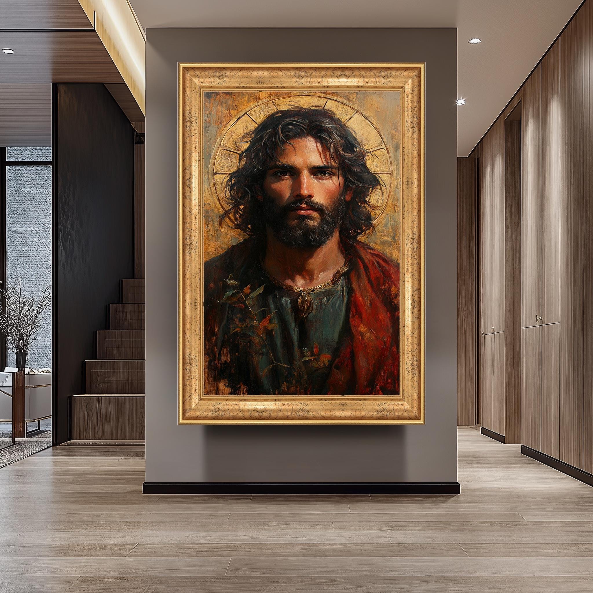 Bring home this beautiful Jesus Christ portrait painting today to enrich your spiritual space with meaningful religious art that inspires daily devotion and uplifts the soul.