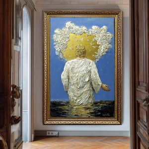 Elevate your sacred space with this divine light poster that merges abstract expressionism with religious symbolism. The empasto style painting technique adds texture that invites contemplation and connection. Order now to experience how this spiritual art poster can transform your environment into a place of peace and reverence.