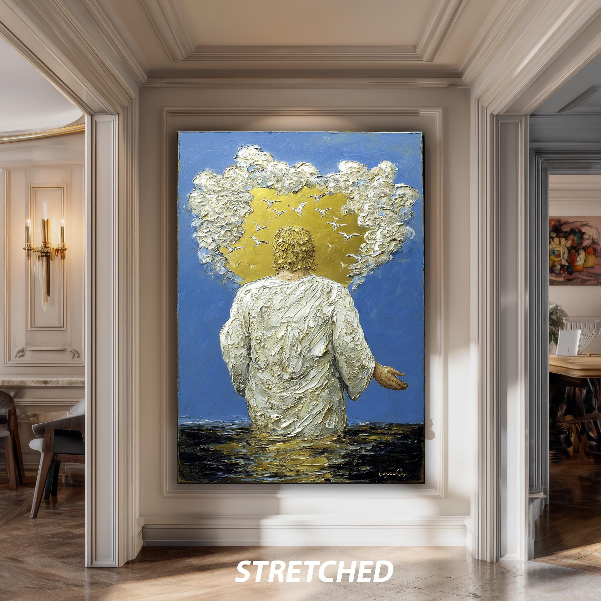 This modern Christian art piece not only elevates your home’s ambiance but also serves as a meaningful gift for Christians who appreciate abstract religious prints and divine light posters. Our advanced printing techniques ensure vibrant colors and long-lasting beauty, while free worldwide shipping and no customs fees for U.S. customers make ordering easy and worry-free.