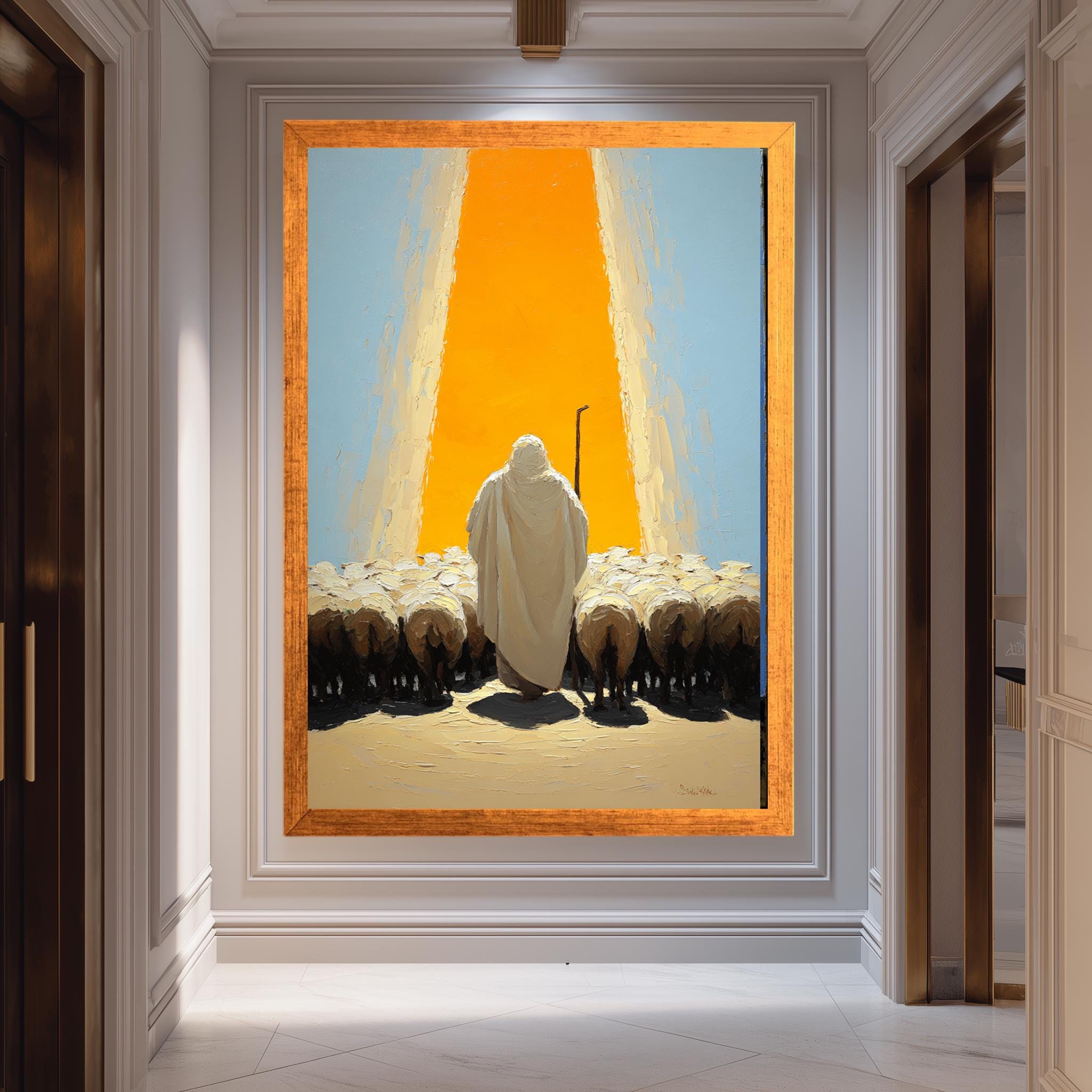 This Jesus Good Shepherd Art serves as more than just wall decoration; it is a source of inspiration and reflection. The abstract religious art design merges traditional spiritual themes with contemporary aesthetics, making it ideal for anyone looking to enrich their home or office with meaningful faith decor print.