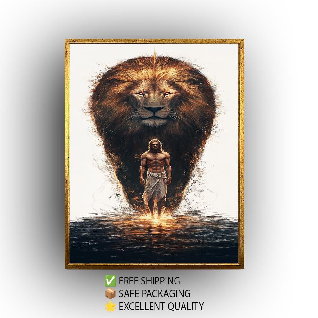Discover the profound impact of Jesus lion wall art that brings divine strength and spiritual inspiration into your home or prayer space. This Jesus and Lion Canvas Wall Print combines powerful Christian symbolism with exquisite craftsmanship to create a focal point that uplifts faith and courage. Printed on a textured canvas, this religious canvas print features Jesus face to face with a majestic lion, symbolizing protection and inner power. Available in multiple sizes, it fits perfectly in living rooms, churches, or Christian prayer room decor, making it an ideal faith based gift for believers seeking peace and strength.