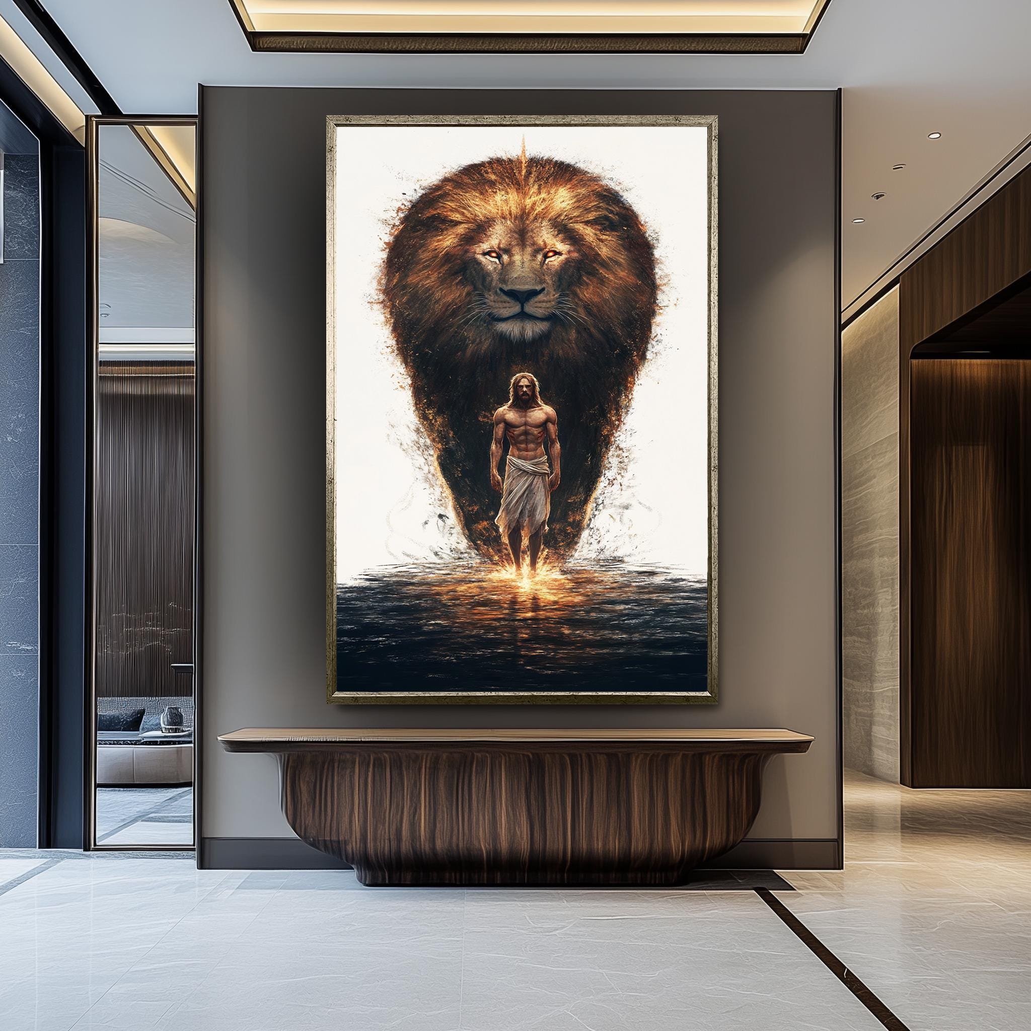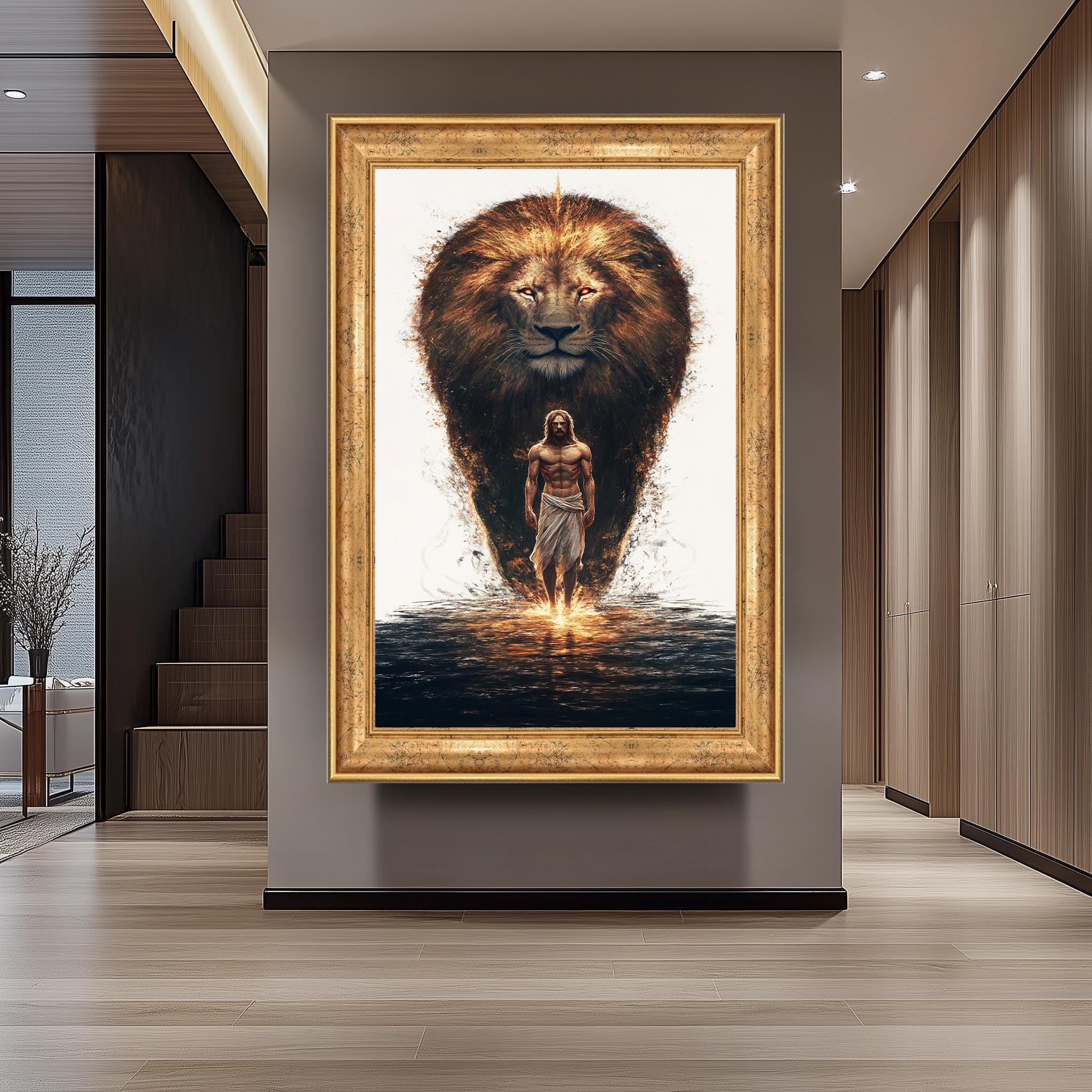 Jesus Lion Wall Art – Christian Canvas Print | Divine Strength Religious Decor