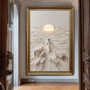 Bring warmth and inspiration to your walls with this peaceful Jesus print that blends artistry with faith. The tranquil scene of lambs under a glowing sunset captures the essence of spiritual home art while offering a meaningful focal point for prayer or meditation. Elevate your décor with this exclusive good shepherd painting that speaks to both heart and home.