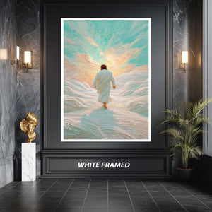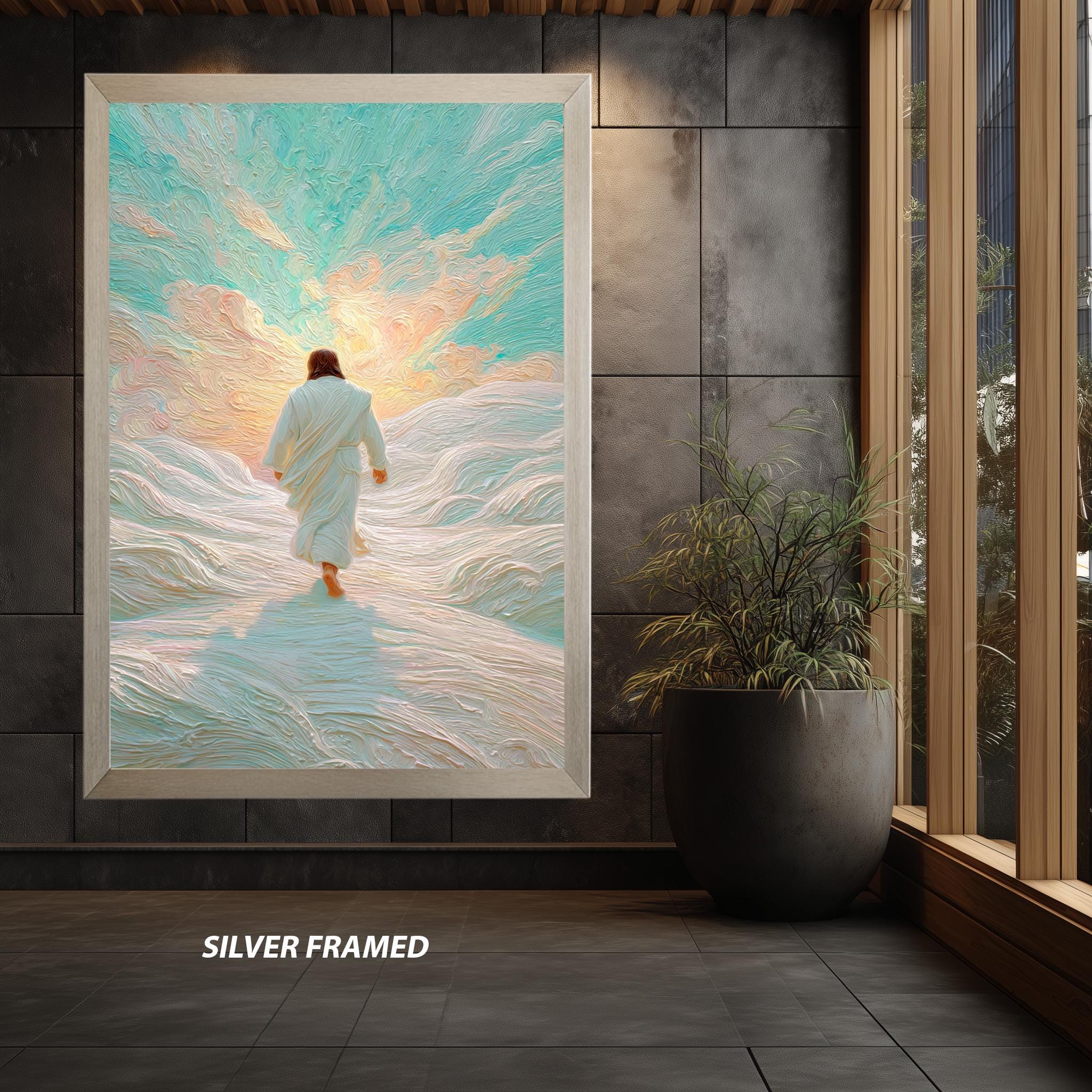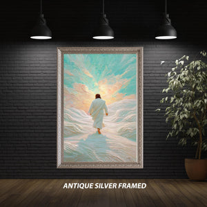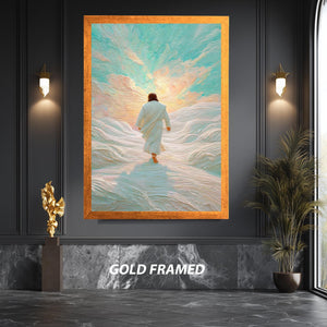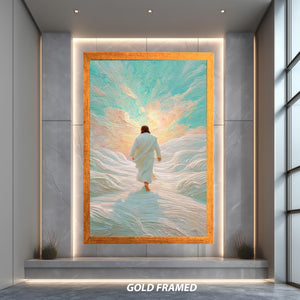 Add this colorful heaven decor to your collection and experience the calming presence of this Bible inspired art every day. The Jesus cloud painting motif serves as a daily reminder of hope and divine guidance along your spiritual path. Elevate your home or worship space with this exclusive sacred walk image that blends artistic beauty with deep religious meaning. This spiritual path poster is easy to hang and maintain, making it an ideal choice for anyone seeking inspirational Christian wall art.
