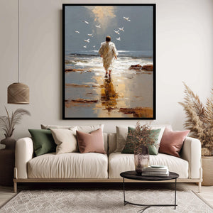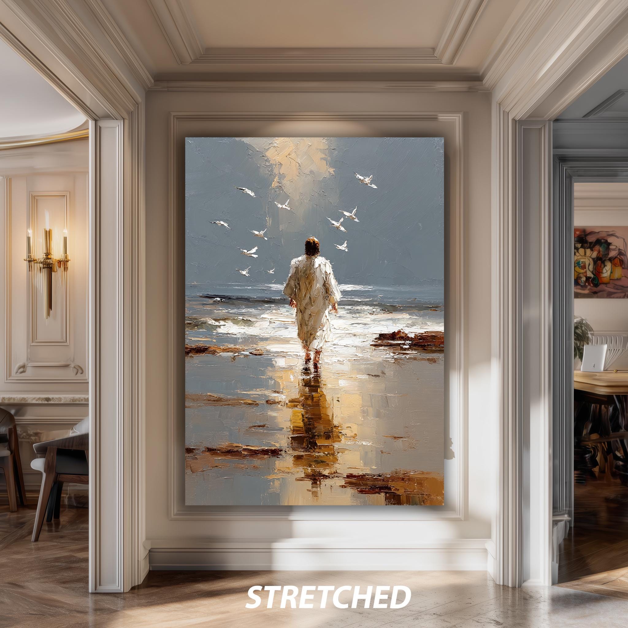 DreamLineCanvas ensures every piece meets museum-quality standards through advanced printing technology that preserves color vibrancy and detail clarity. Our dedicated customer support team welcomes custom size and design requests to help you find the perfect fit for your home or office. Choose this Jesus Walking on Water Art print to enrich your environment with a timeless symbol of faith and divine presence.