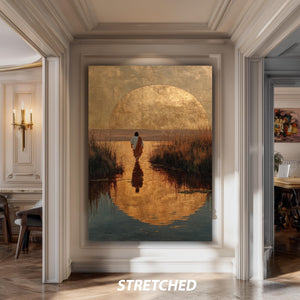 This high-resolution digital print features vibrant golden sunset artwork that highlights the miraculous moment of Jesus walking on water. Printed on premium quality canvas or as a printable file, it offers flexibility for framing or direct display, making it ideal religious home decor for believers and art lovers alike. The peaceful Jesus painting evokes tranquility and devotion, while the abstract design blends seamlessly with modern interiors.