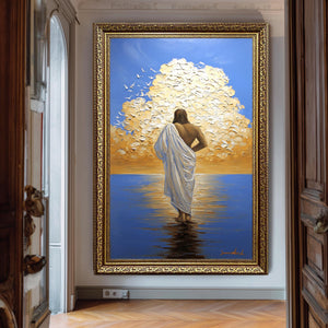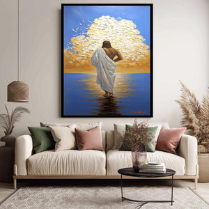 The Jesus Walking on Water Digital Print Christian Art Religious Wall Decor is a stunning faith wall poster designed to inspire and uplift any space with its powerful biblical miracle print. This inspirational faith decor captures the divine power artwork of Jesus walking on water, bringing a sense of spiritual strength and hope to your home or office. Printed on premium canvas, this religious canvas print offers vibrant colors and fine details that highlight the modern Jesus poster’s unique blend of abstract religious art and contemporary Christian decor.
