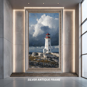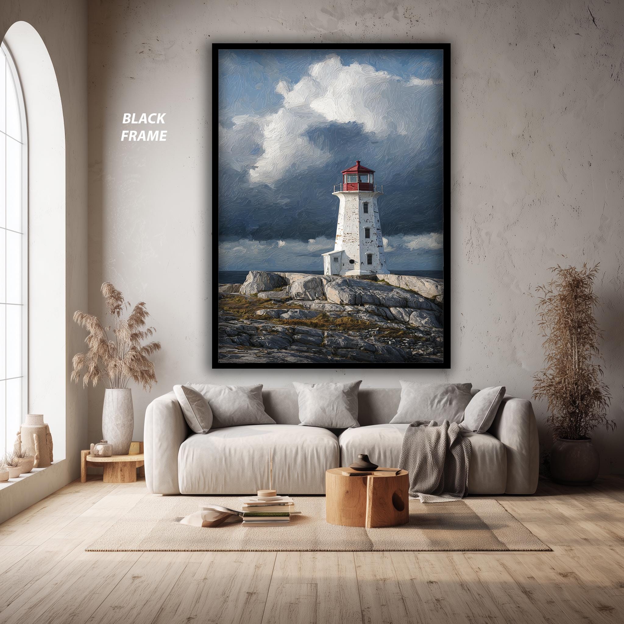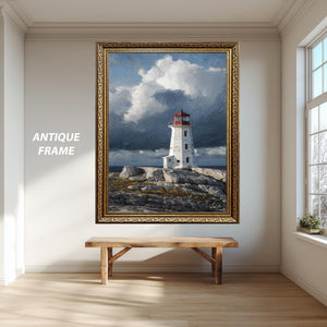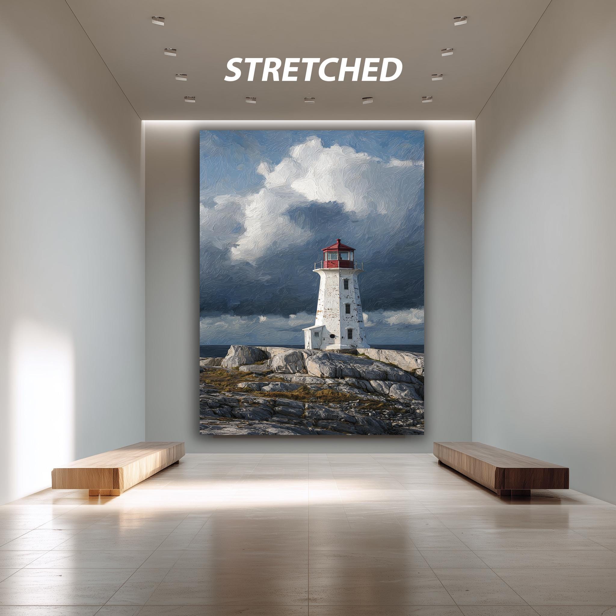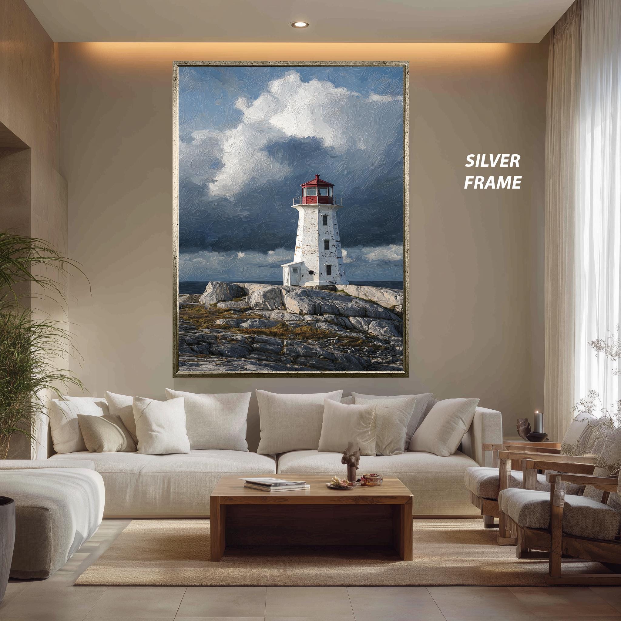 Lighthouse Art Print – Coastal Wall Decor with Dramatic Sky and Rocky Coast Canvas