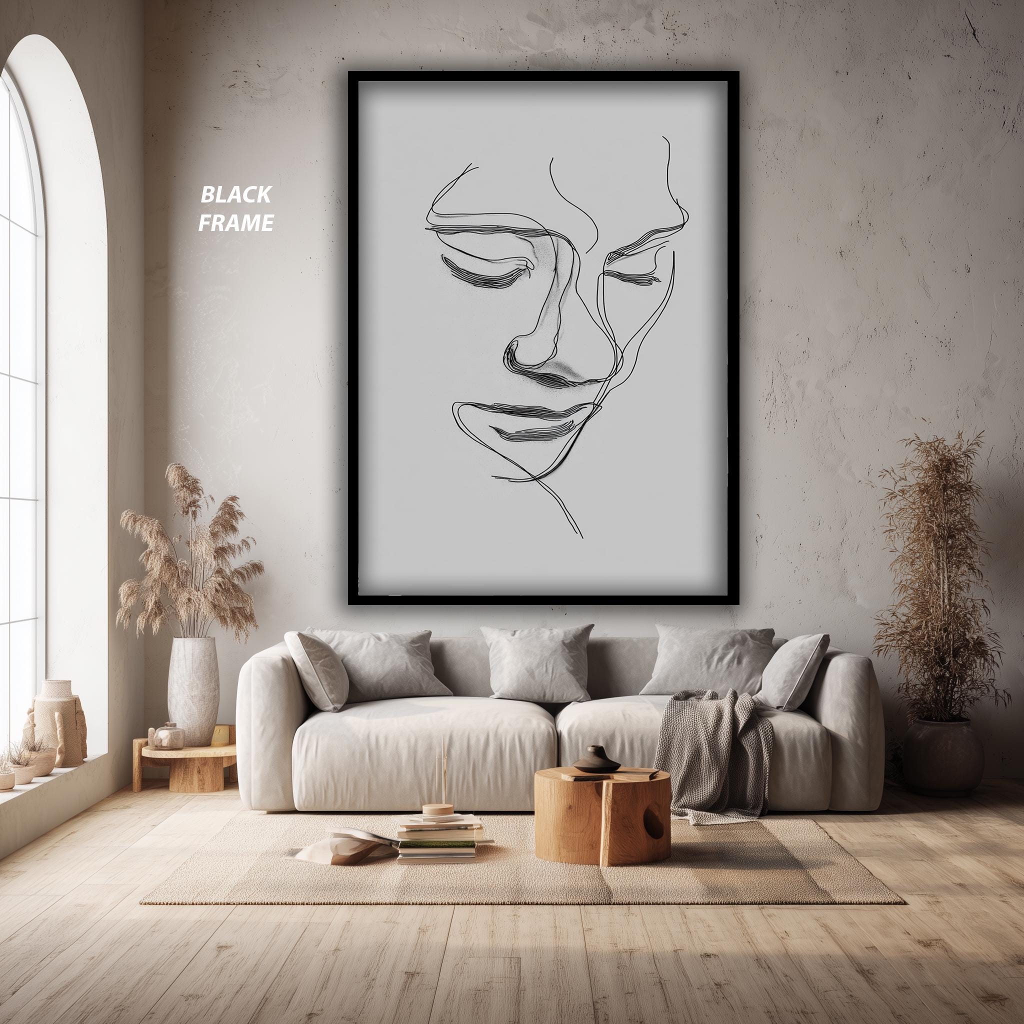 Whether placed in a living room, bedroom, office, or gallery space, this minimal line art portrait transforms walls into serene focal points. Its elegant face sketch style merges simplicity with emotional depth, creating a calming atmosphere that invites reflection. The neutral color palette makes it an easy addition to various design aesthetics, from minimalist to mid-century modern.