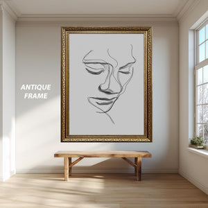 Crafted with museum-quality materials, this simple face sketch is printed on durable canvas, available in multiple sizes ranging from 8"x12" (20x30cm) to 59"x98" (150x250cm). Choose from roll (unframed) or stretched canvas options, with frame choices including classic gold, silver, black, white, brown, and luxury aged or antique finishes. The precise printing technique ensures vibrant contrast and fine detail that highlight the elegant face sketch’s delicate features.