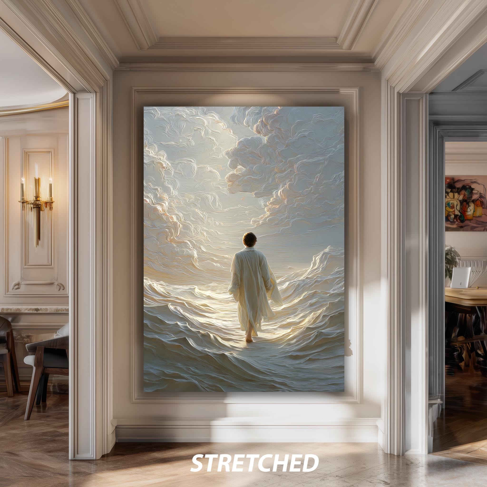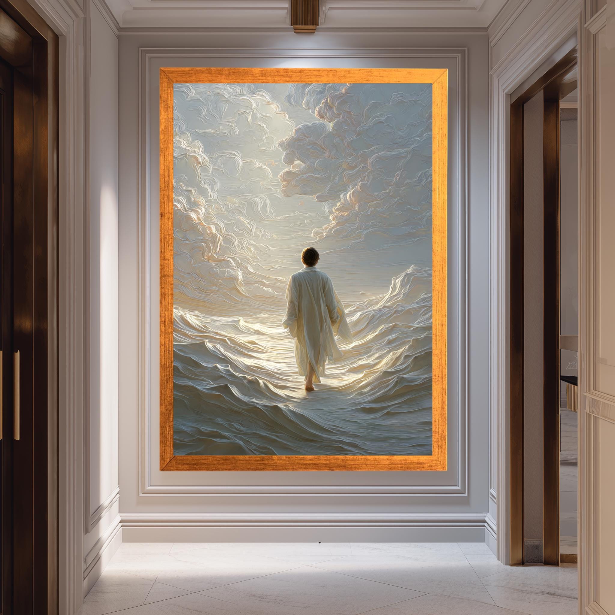 Minimalist Jesus Wall Art captures the serene moment of Jesus walking on water, offering a peaceful religious art piece that brings calm and faith-inspired beauty to any space. This Spiritual canvas print combines abstract expressionism with divine themes to create a unique blend of modern spiritual poster and abstract faith artwork. Perfect for those seeking Christian wall decor that complements minimalist faith decoration and contemporary religious canvas styles, this Jesus walking on water print transforms your home or office into a sanctuary of calm and inspiration.