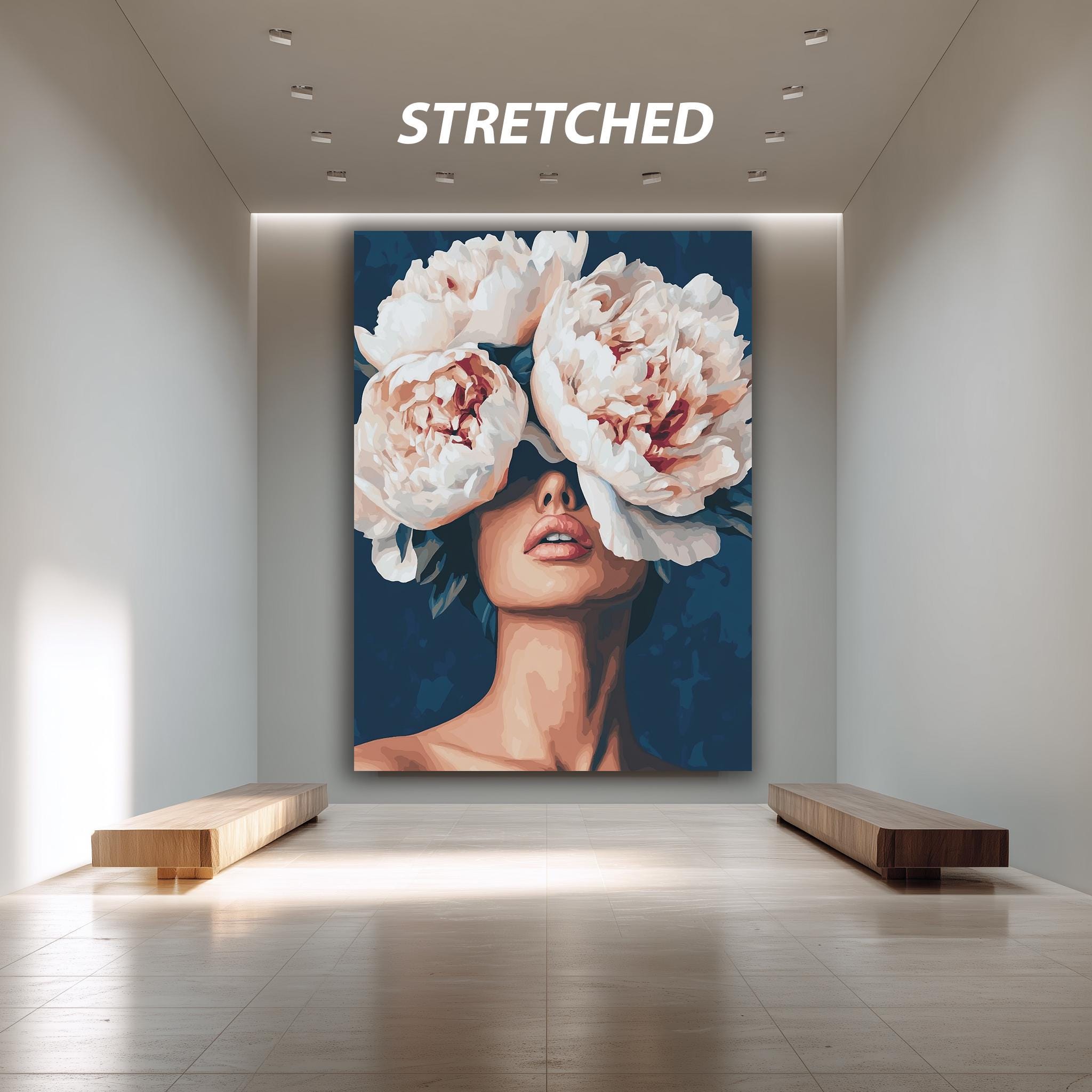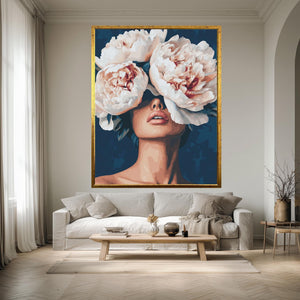 This modern floral canvas print features a bold feminine art style that brings the elegance of a peony flower poster into your living space. Designed as a digital portrait art print, this floral woman artwork combines abstract expressionism art with vibrant color field painting to create a stylish wall decor piece perfect for minimalist wall art and contemporary art decor lovers. The gallery wrapped canvas enhances any room with mid century modern art flair, making it an ideal canvas print for home or office.
