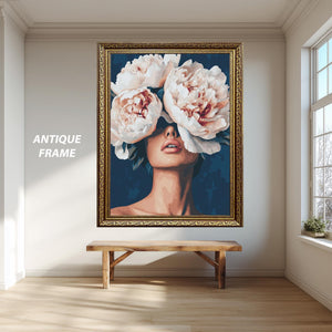 - Bold feminine art style featuring peony flower poster elements for a unique floral woman artwork
