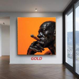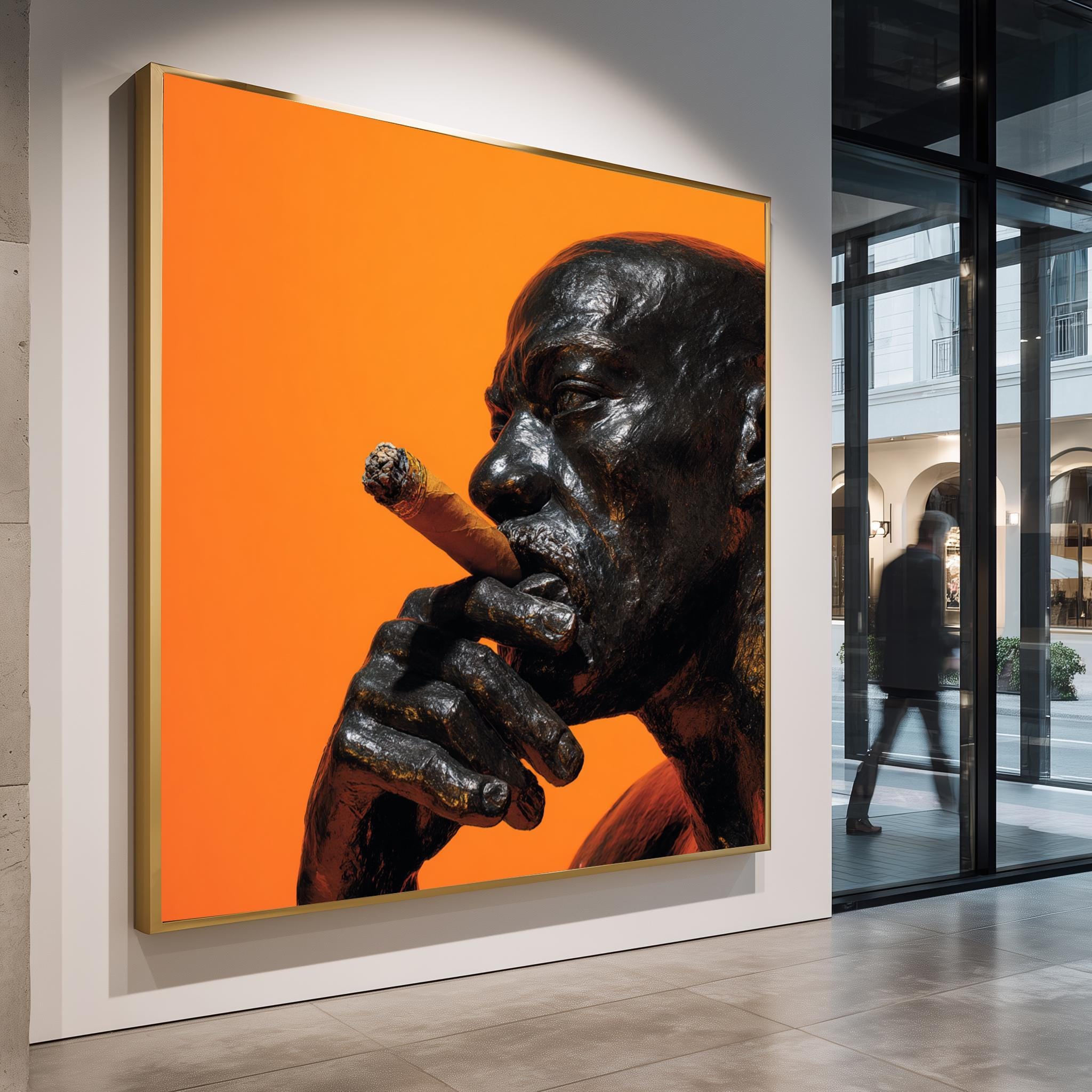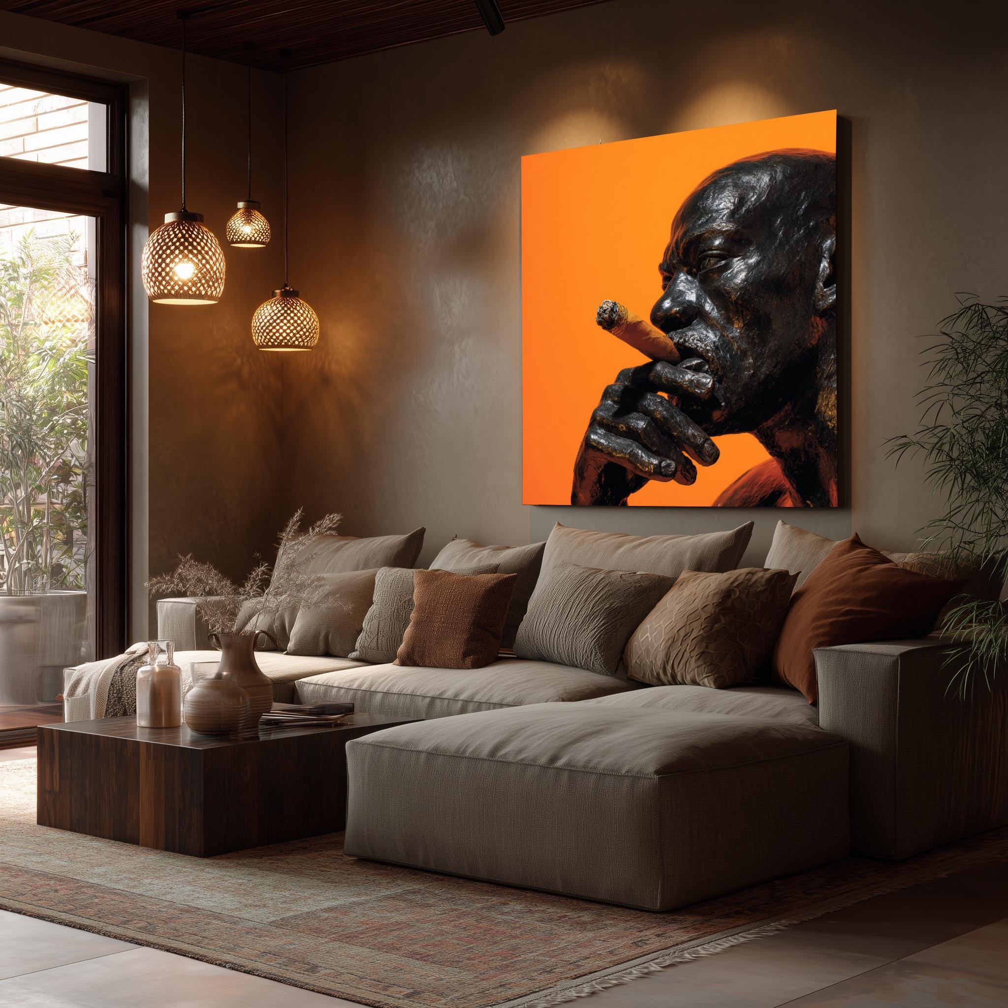 This modern male wall art features a bold male portrait with a cigar and striking orange background, designed to enhance contemporary urban interiors. Perfect for adding edgy masculine decor to your living room or bachelor pad, this print captures the essence of strength and style in a captivating urban art print. Crafted with premium materials, it delivers vivid colors and sharp details that bring the strong face artwork to life.