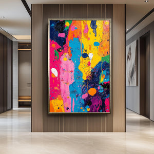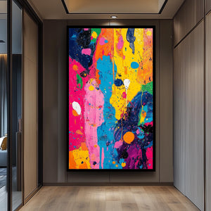 This Neon Drip Pop Art canvas is a bold pop art painting designed to energize modern urban artwork lovers with vibrant abstract painting that transforms any space into a statement wall art centerpiece. Featuring dripping neon colors in neon pink, cobalt blue, yellow, orange, and deep navy, this textured brushstroke canvas delivers dynamic movement and edgy interior design flair. Measuring from 8"x12" up to 40"x78", it’s perfect for contemporary home decor seeking colorful wall decor that combines pop art expressionism with abstract canvas art. Crafted on premium 100% natural cotton canvas with eco-friendly inks, this custom canvas print offers fade-resistant vibrancy and durability. Hand-stretched over a sturdy 1-inch wooden frame, it arrives ready to hang with all hardware included. Tested for quality and backed by AuraCanvasUS’s satisfaction guarantee, it’s ideal for bold living rooms, creative studios, or urban-inspired spaces.