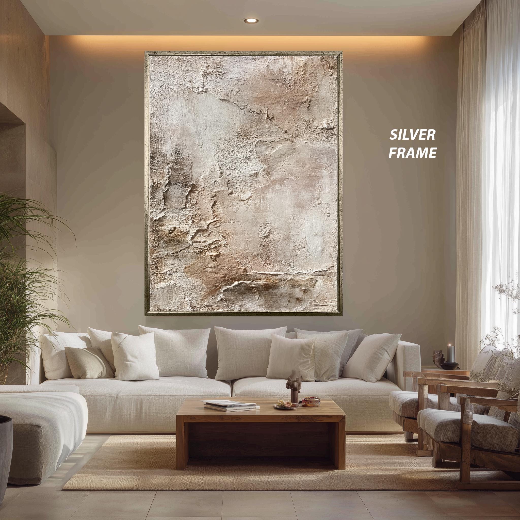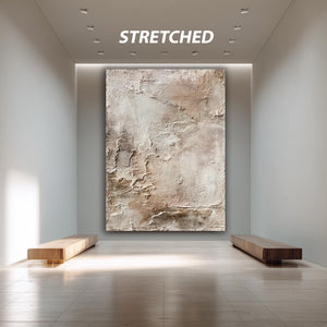 This neutral abstract wall art features a textured wall art design in soothing beige and earth tone artwork, perfect for adding calm and sophistication to modern rustic interiors. This minimalist Japandi print blends organic wall art canvas qualities with wabi sabi poster aesthetics to create a calming wall print that complements contemporary canvas print collections. Printed on gallery wrapped canvas, this beige modern painting brings the warmth of rustic decor print with the emotional depth of abstract expressionism art.